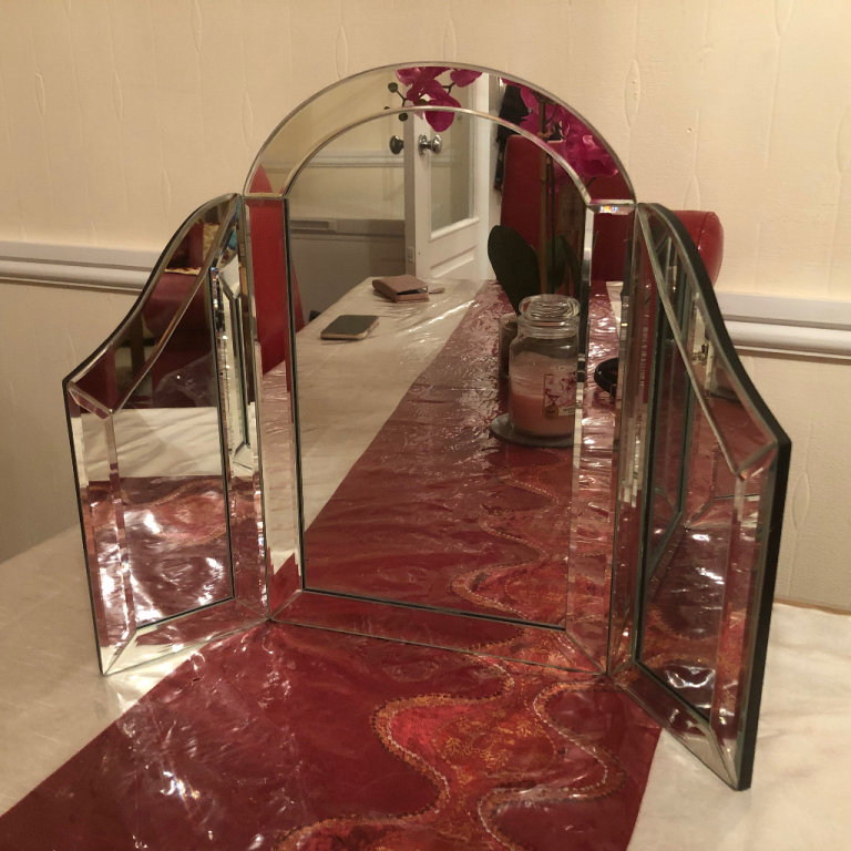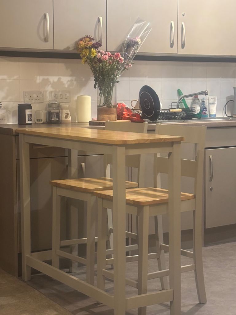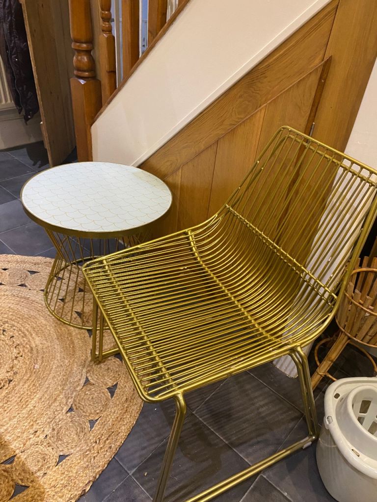 This is in excellent condition. One set of legs is further apart than the other dependent upon what you need to place beneath it.
