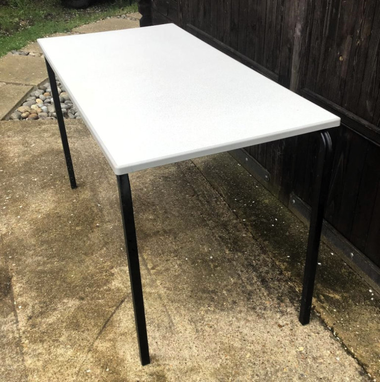 Nearly New Rectangular Welded Frame Table Speckled Laminate Finish.