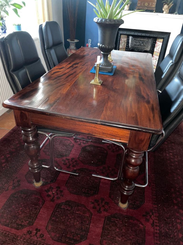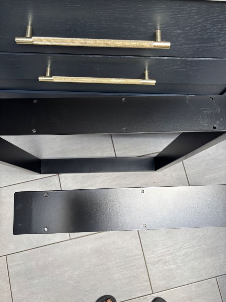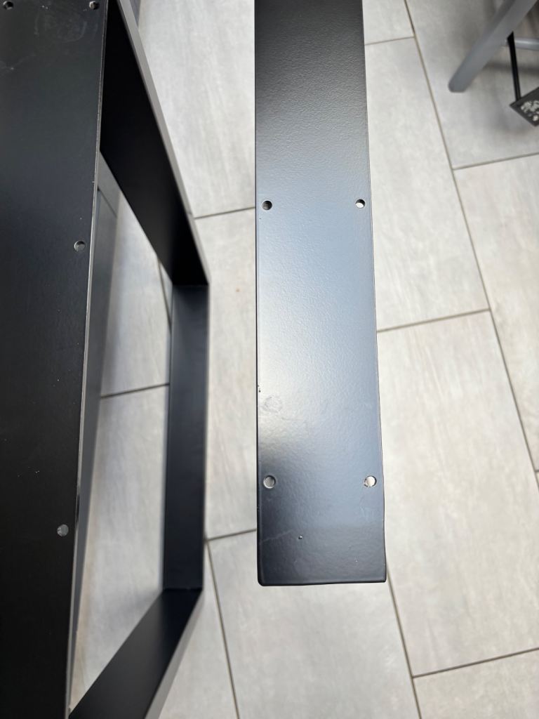 Pair of black metal table legs ideal for a DIY project. 28 inches high 23.5 inches wide. Unused brand-new.