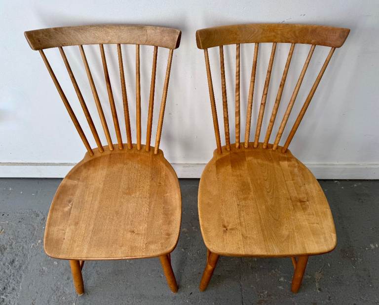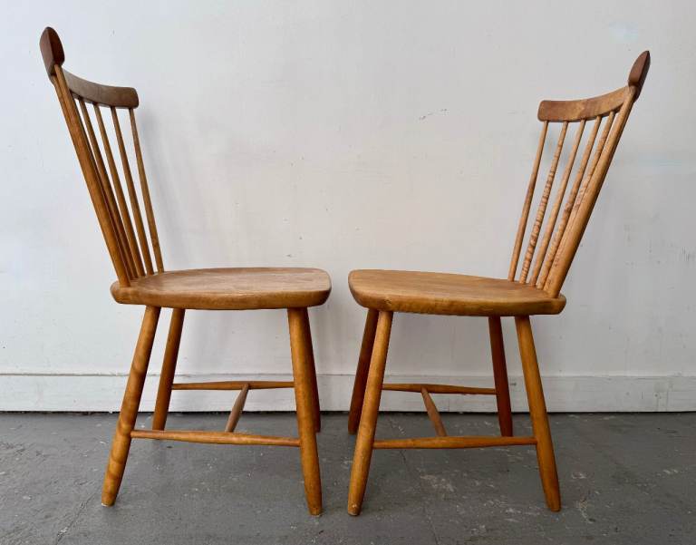 Beautifully crafted with Malmsten’s signature elegant simplicity, these chairs feature sculpted elm seats and tapering spindle backs.