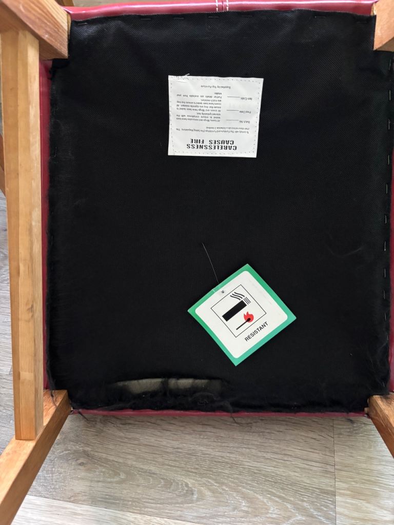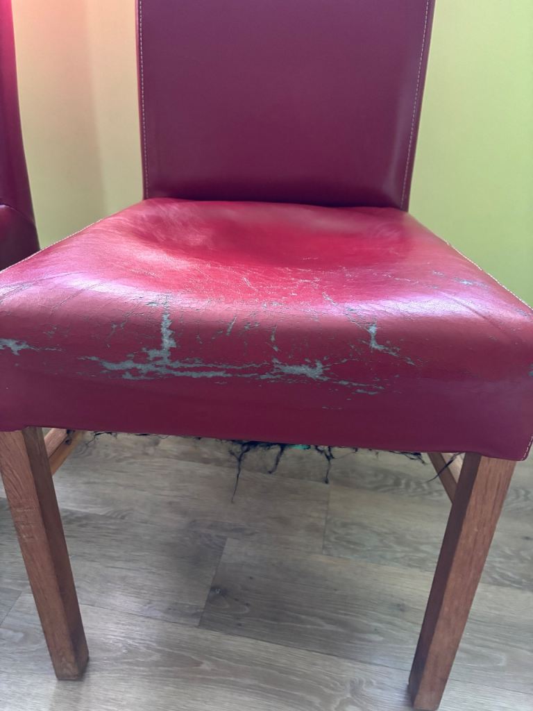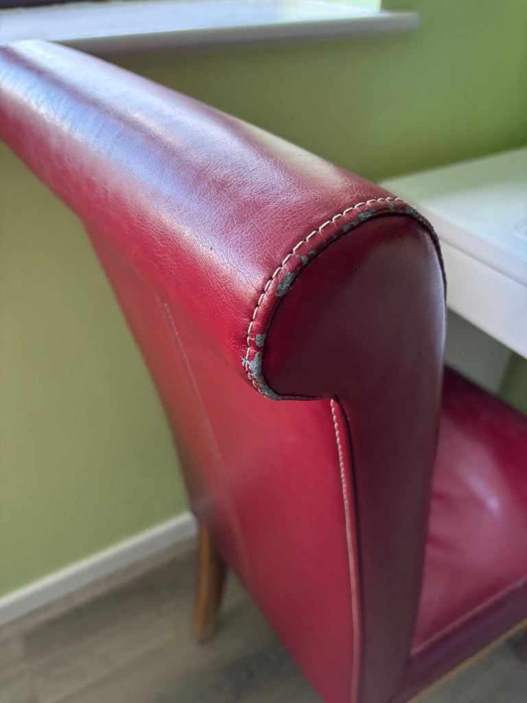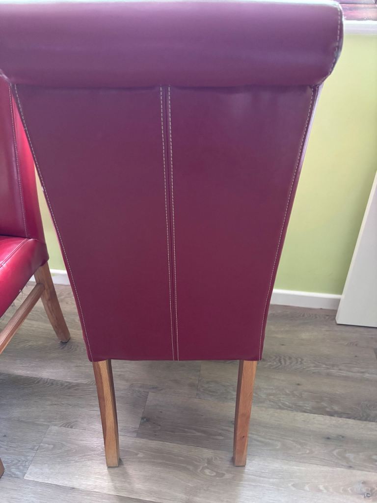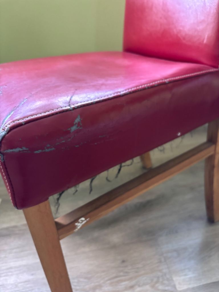 Posting for 1+ yearsRed faux leather dining room chair x 2