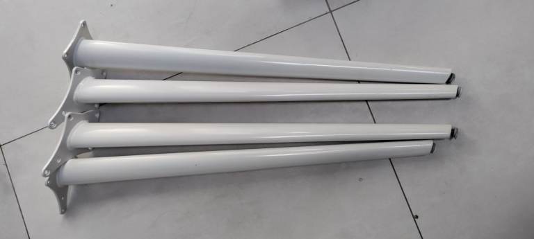 Good quality dining table - wooden slab and steel legs with adjustable pegs
