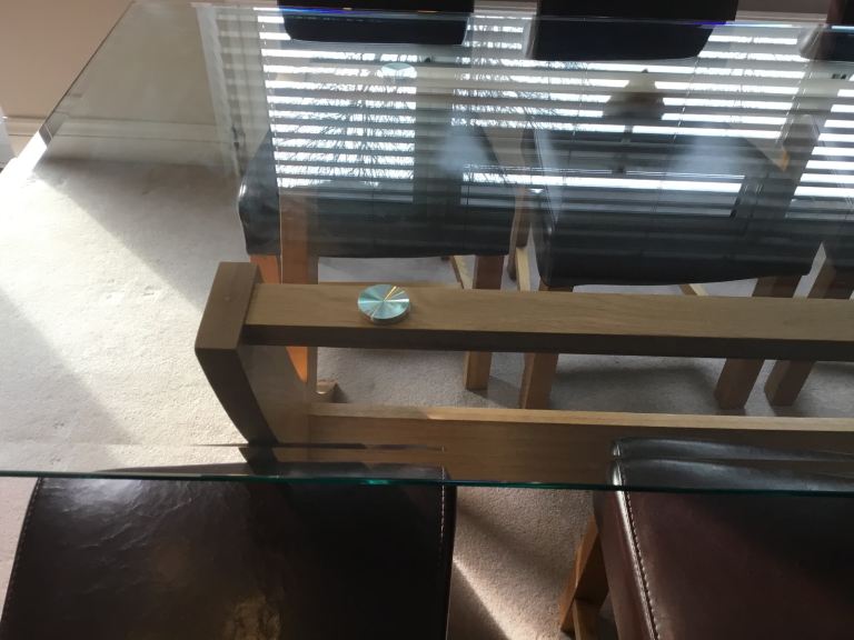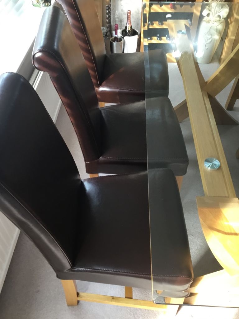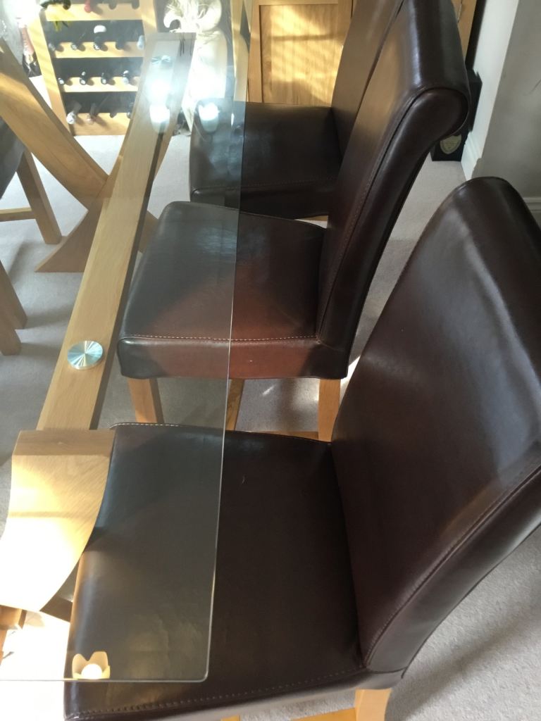 Posting for 9+ yearsReflection Glass Dining table with 4 Leather chairs