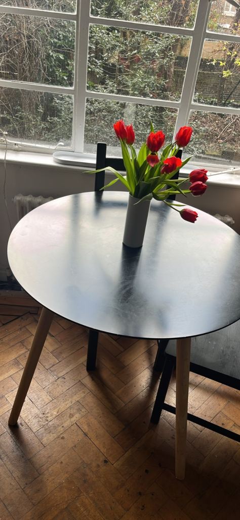 Lovely black wooden round dining table, perfect for 2-4 people.