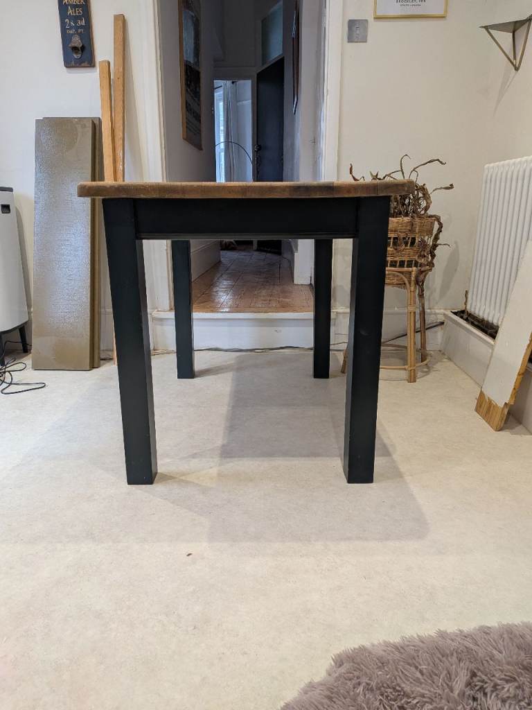 105cm (w) × 74cm (d) × 76cm (h). Legs painted dark green. Pine top