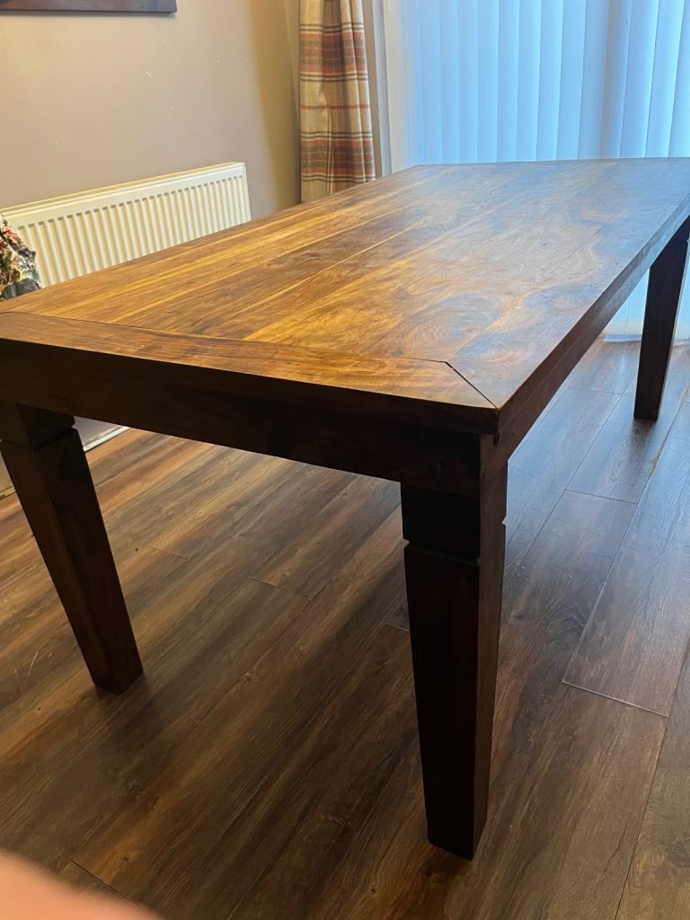 Solid oak dining table for sale. Seats 6-8 people still a great condition. 175cm long by 91 cm wide.