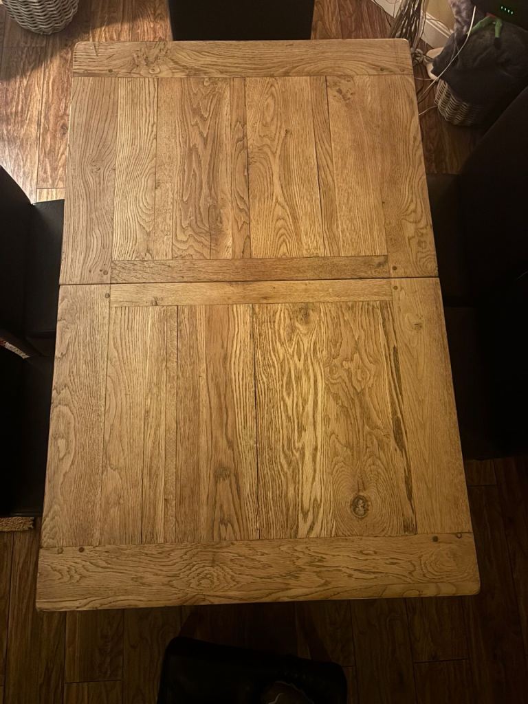 Solid oak table with natural oak markings