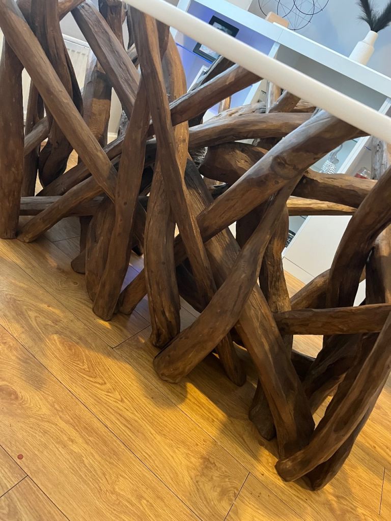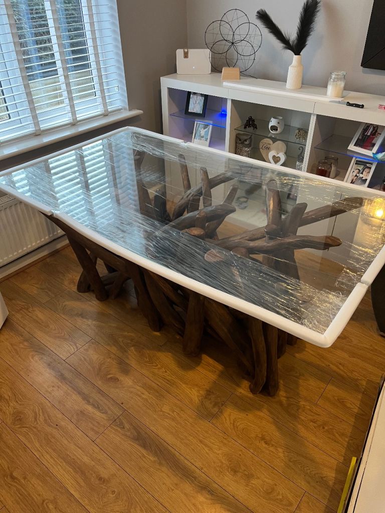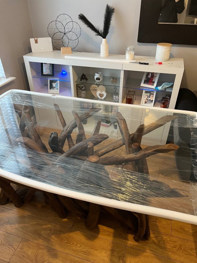 Grab yourself a bargain with this glass top stunning solid real wood base dining table this table is for say for 1649.99 but it could be yours for just half that price at 800 wow