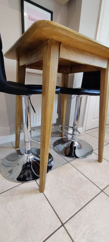 Wooden bar height dining table - W70cm x D70cm x H90cm.