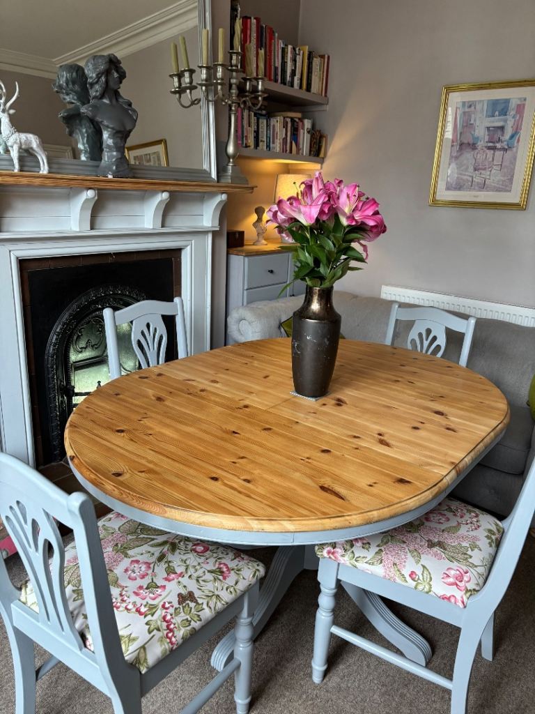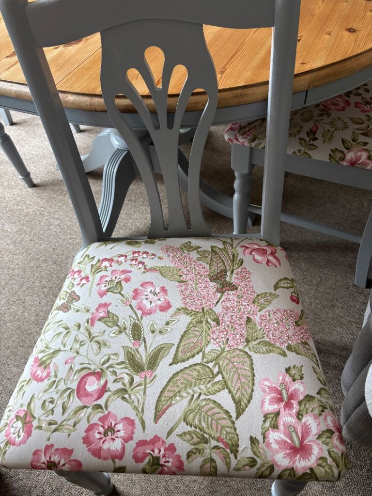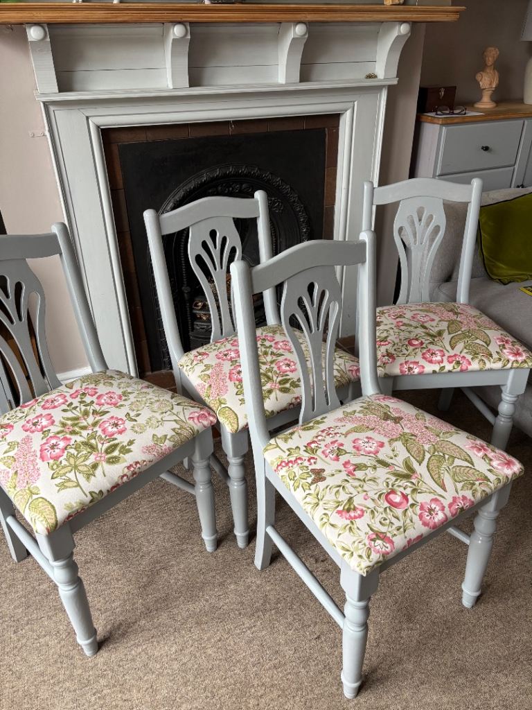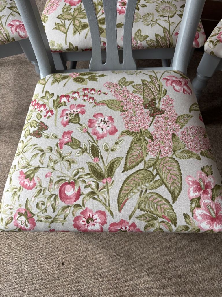 The chairs have been completely stripped back, re-padded and newly upholstered in a fabulous fabric.