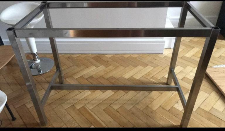 Sturdy chrome table base for sale. You can put your own deaign table top onto it.