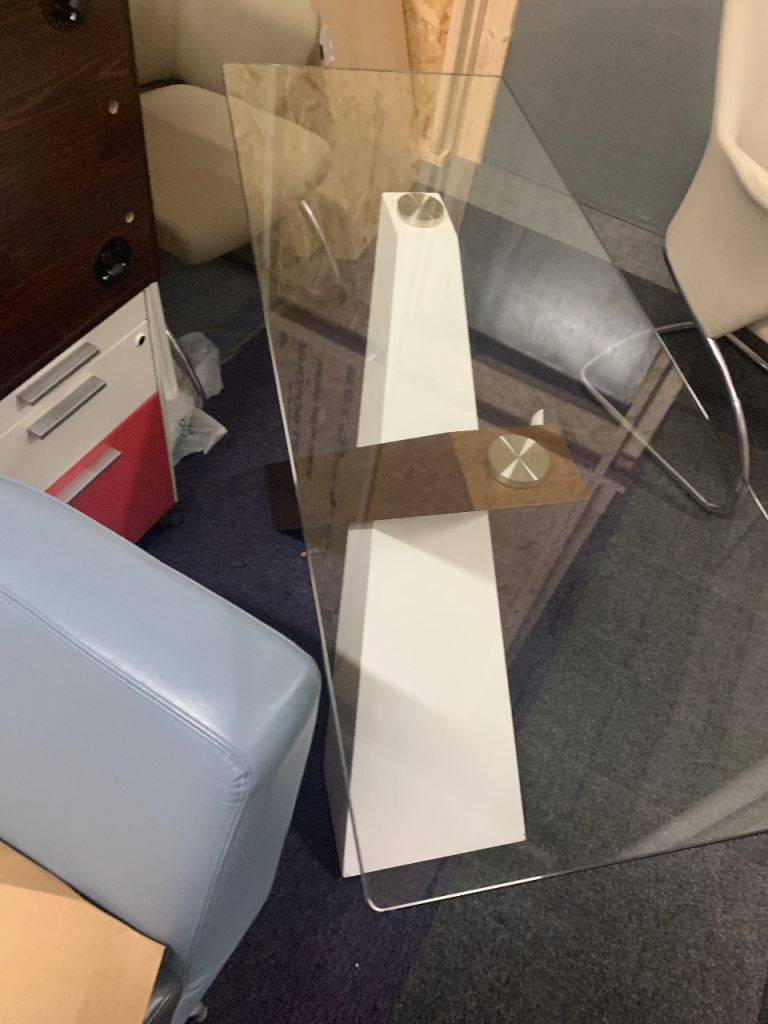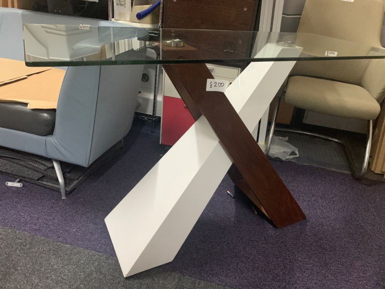 Used contrast wood white and glass top console table