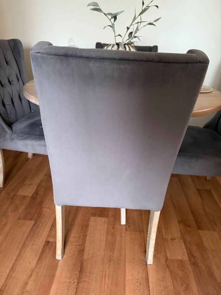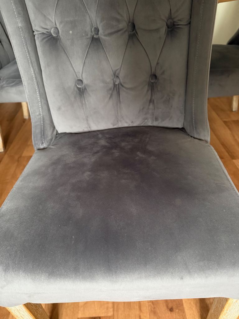 Four velvet chairs with pale grey oak effect legs