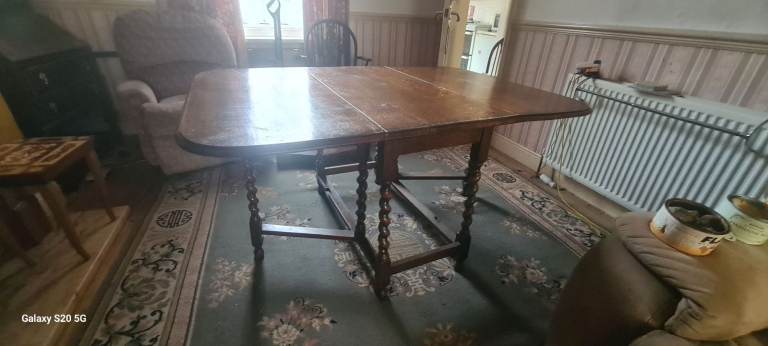 Posting for 5+ yearsVintage or antique oak drop-leaf gateleg table with barley twist legs