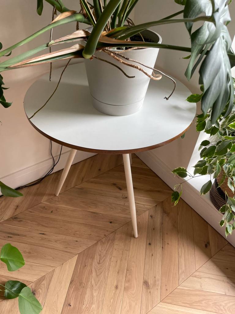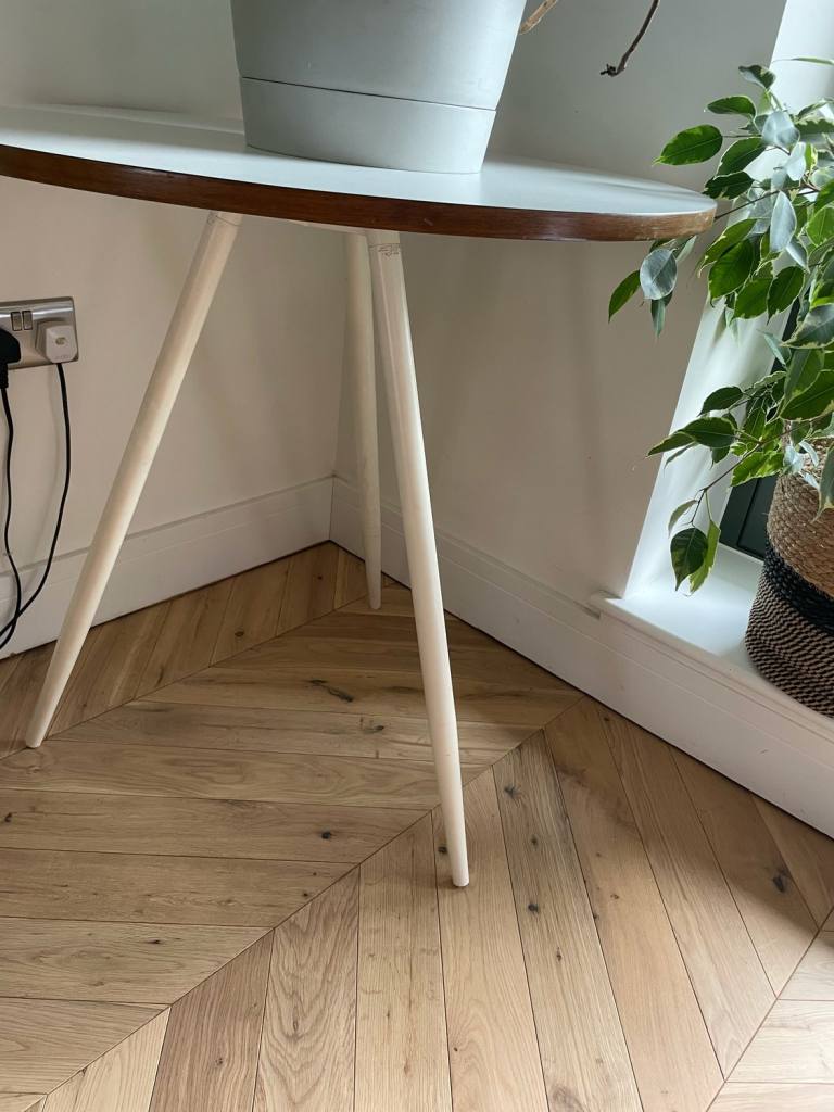 Really nice table - has a a characterful wooden band. Slight wear on legs but nothing major.