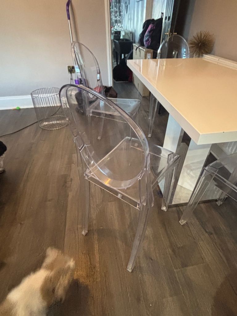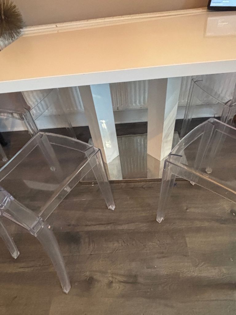 Posting for 8+ yearsWhite dining table & 4 ghosts chairs