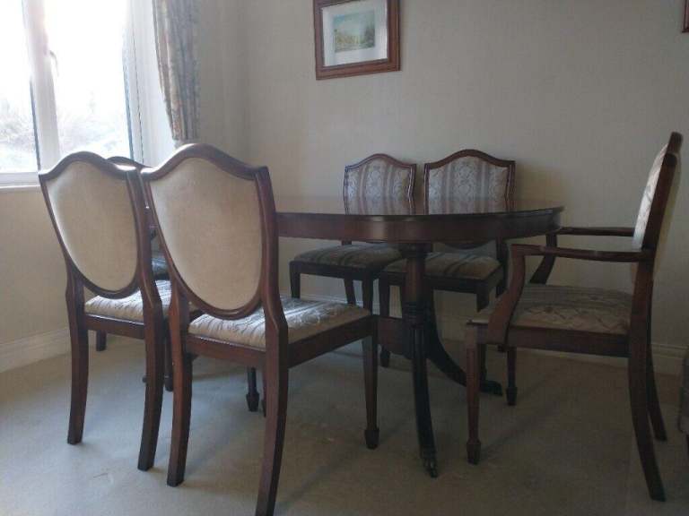Table and chairs, signs of use and one leg damaged at back. Free to take asap