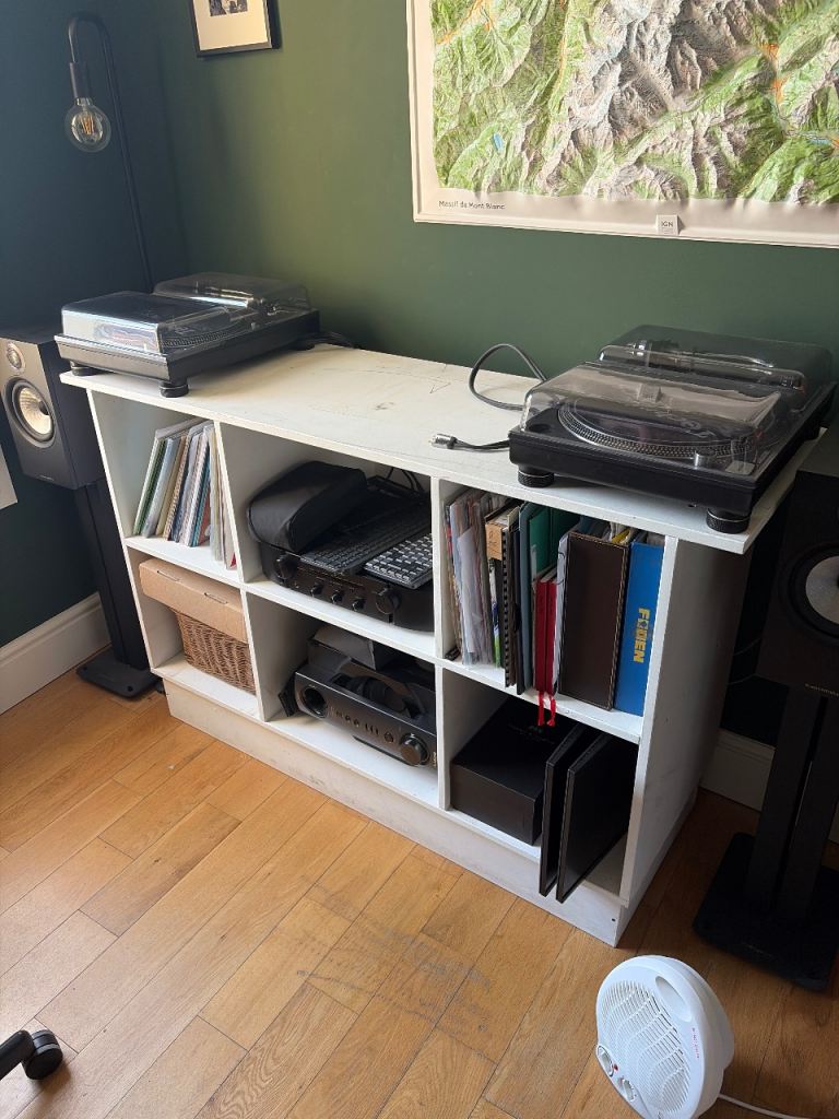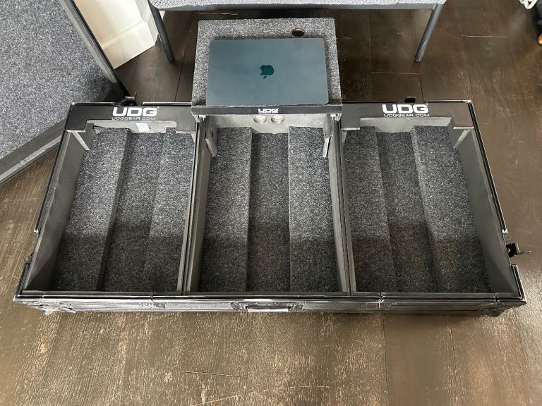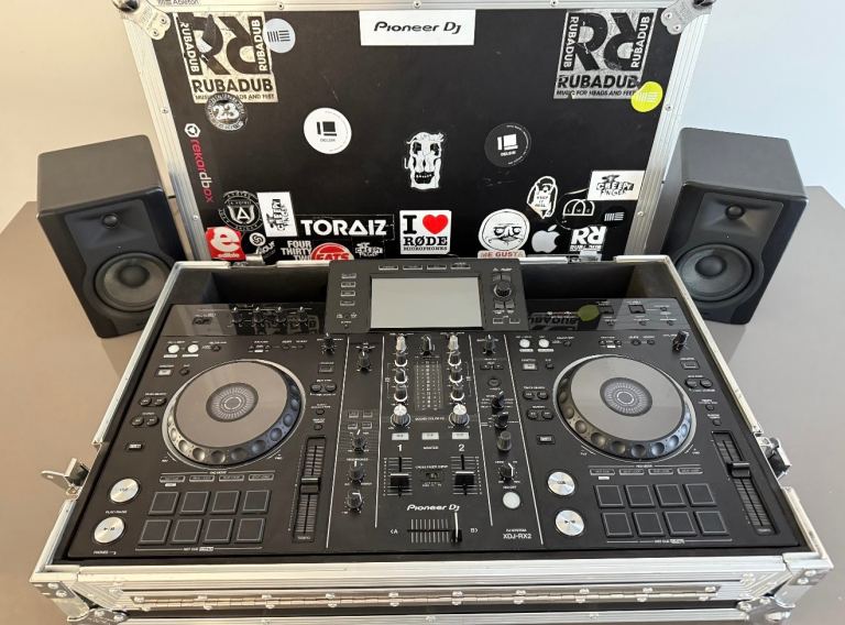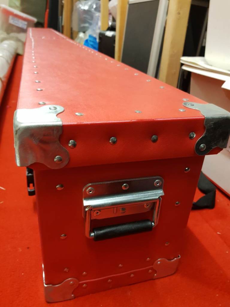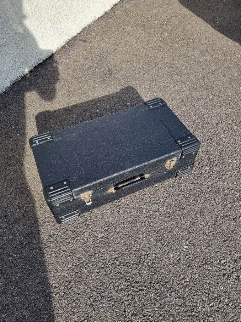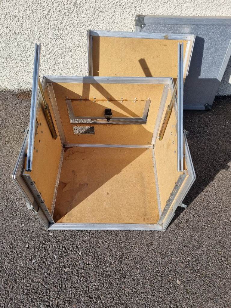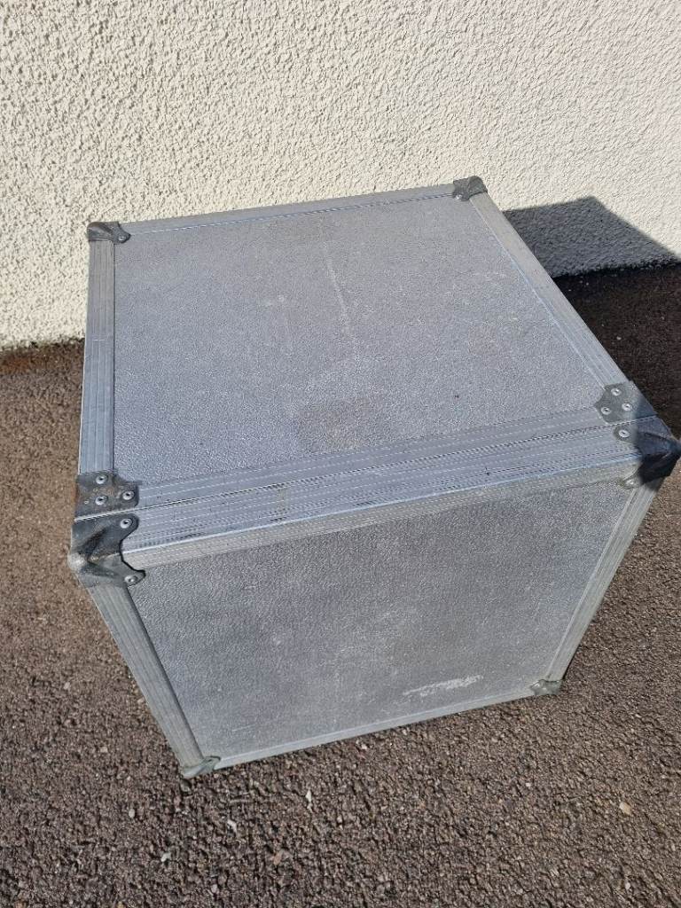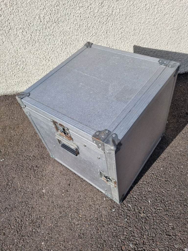 Flight case for racked sound equipment . Approx 50cm in each dimension. Previously used for transporting dj equipment (mixer, cd decks, amp etc) has fixings for racked equipment. Old but still in good condition.