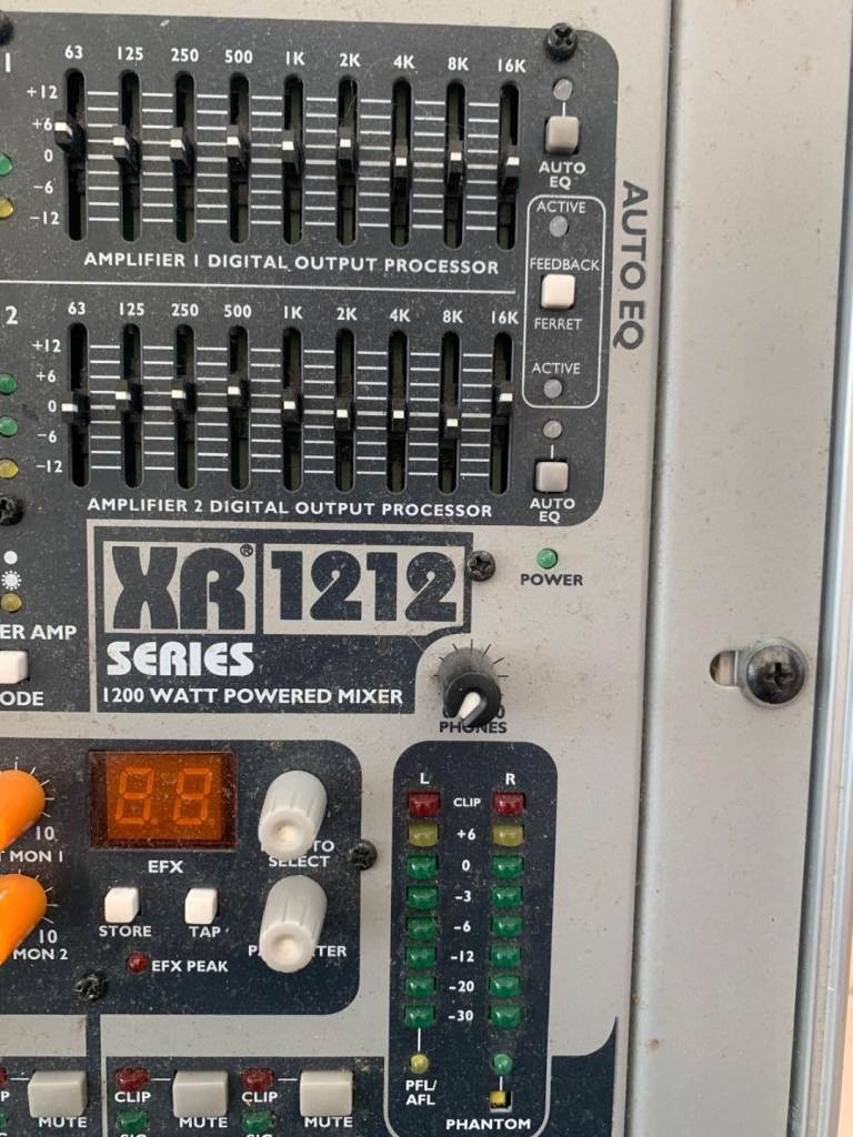 Peavey Xr1212 Pa system with 4 speakers and tripod stands also comes with flight case