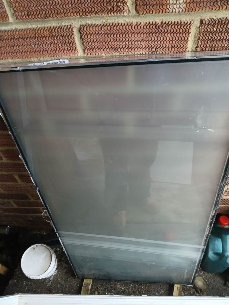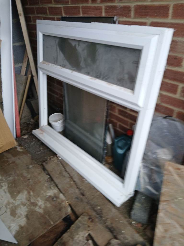Double glazed window with top opener, obscure glass, size is 120cm x 107 cm, removed from bathroom, needs a new seal around the glass.