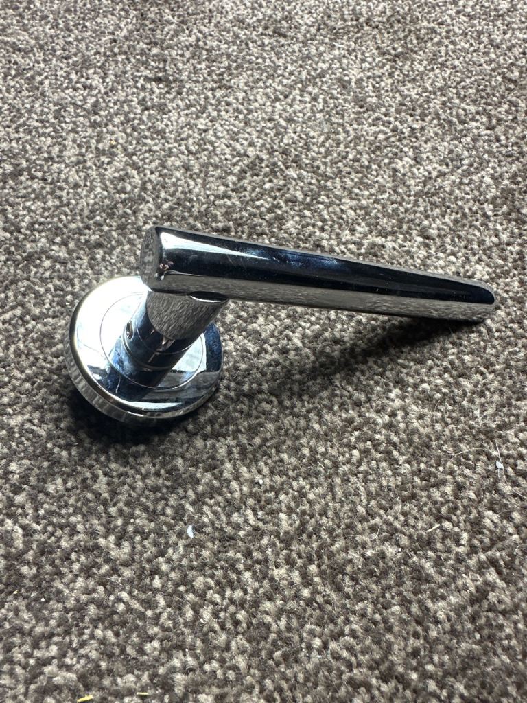 Euro Spec Chrome Lever Door Handles – 7 Brand New Sets (1 Bathroom Lock Set)