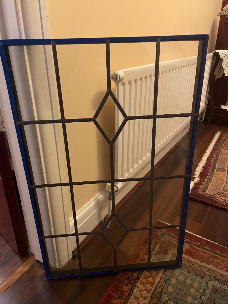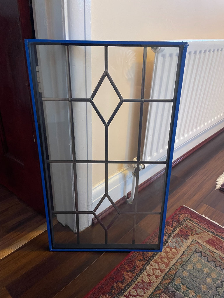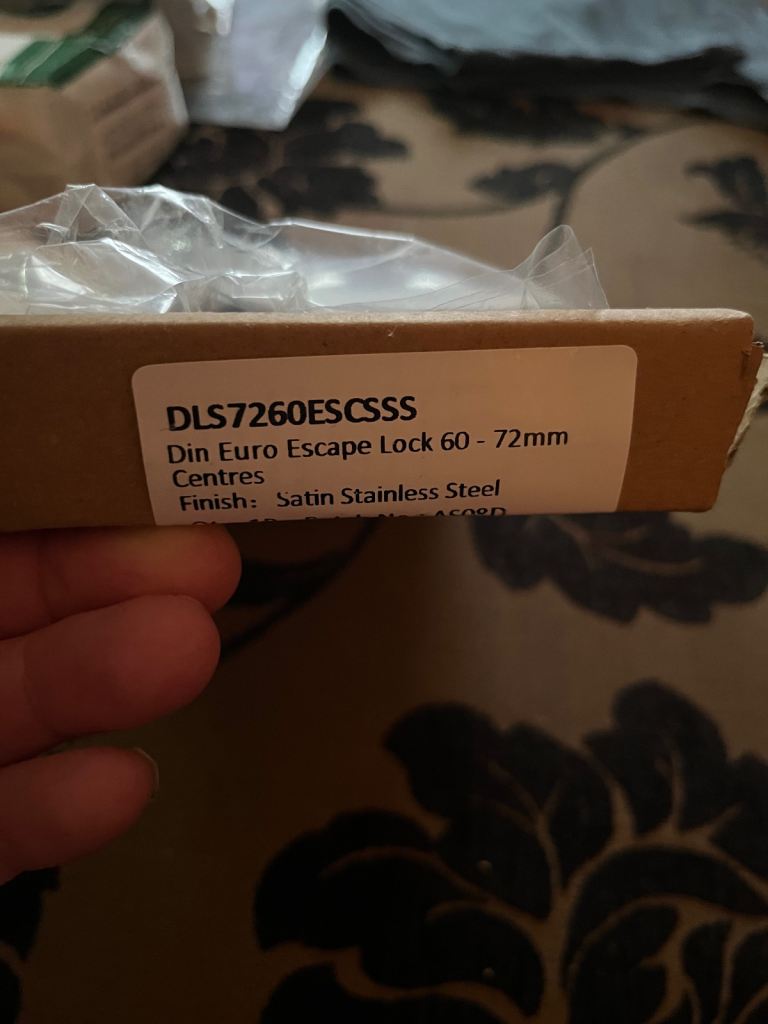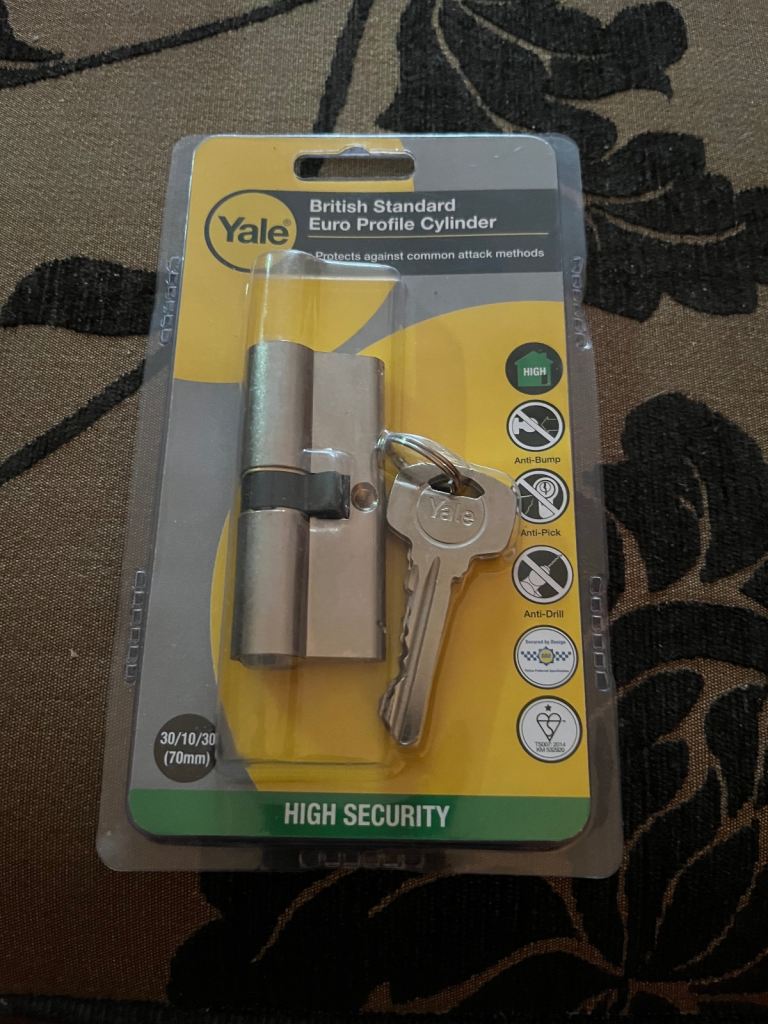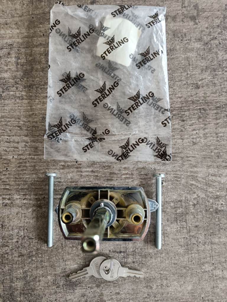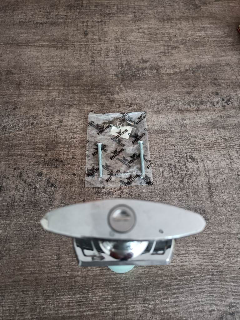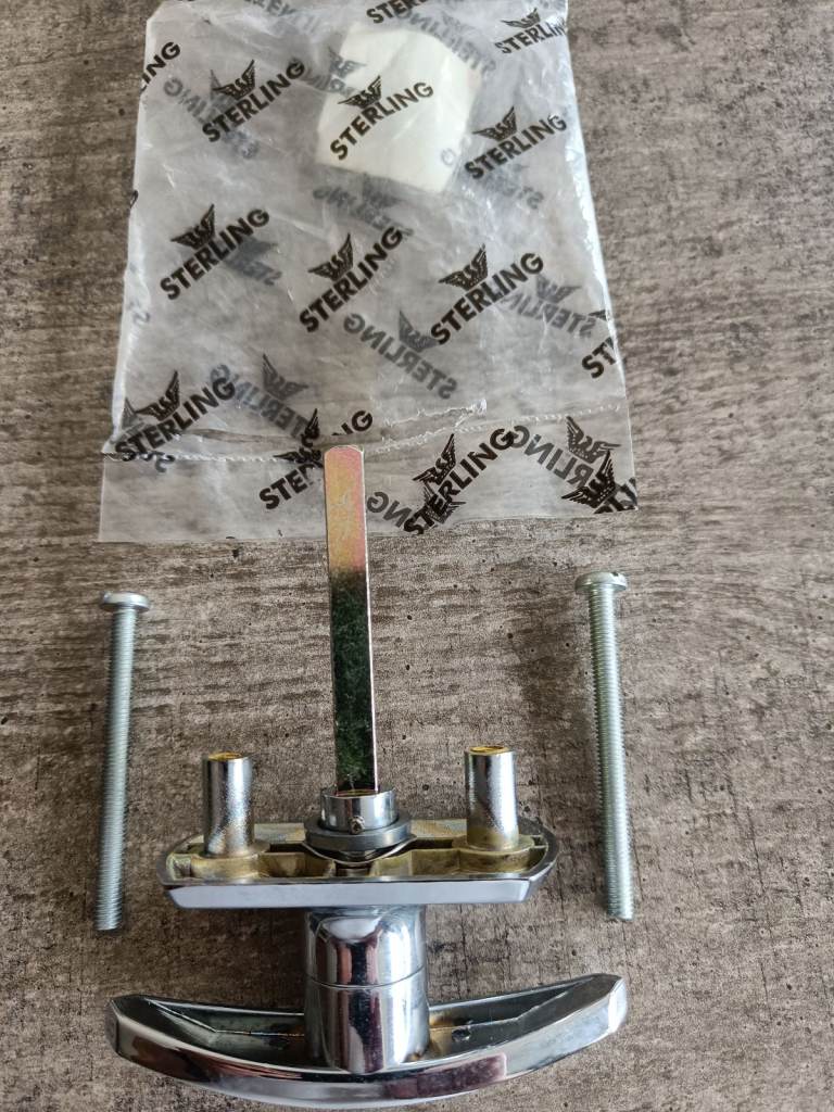Garage door handle with dead lock with two keys, chrome finish, fittings include extra long screws and a square spindle.