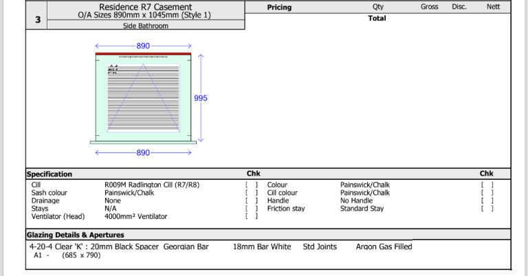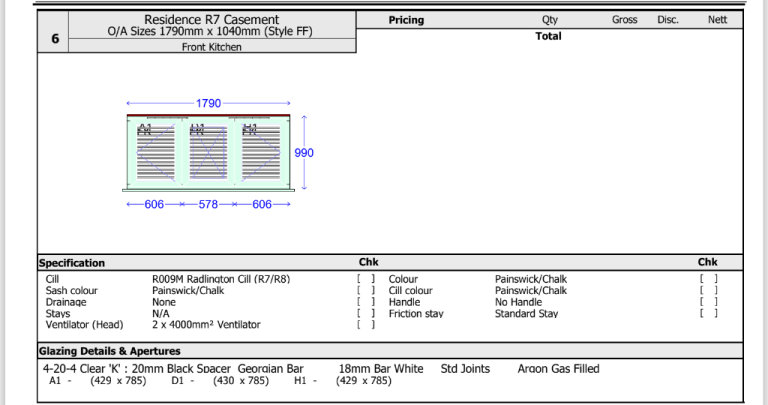 Triple window unit plus single unit - see spec sheets.