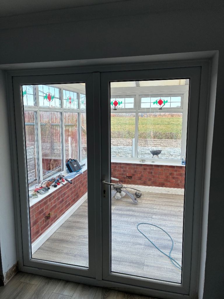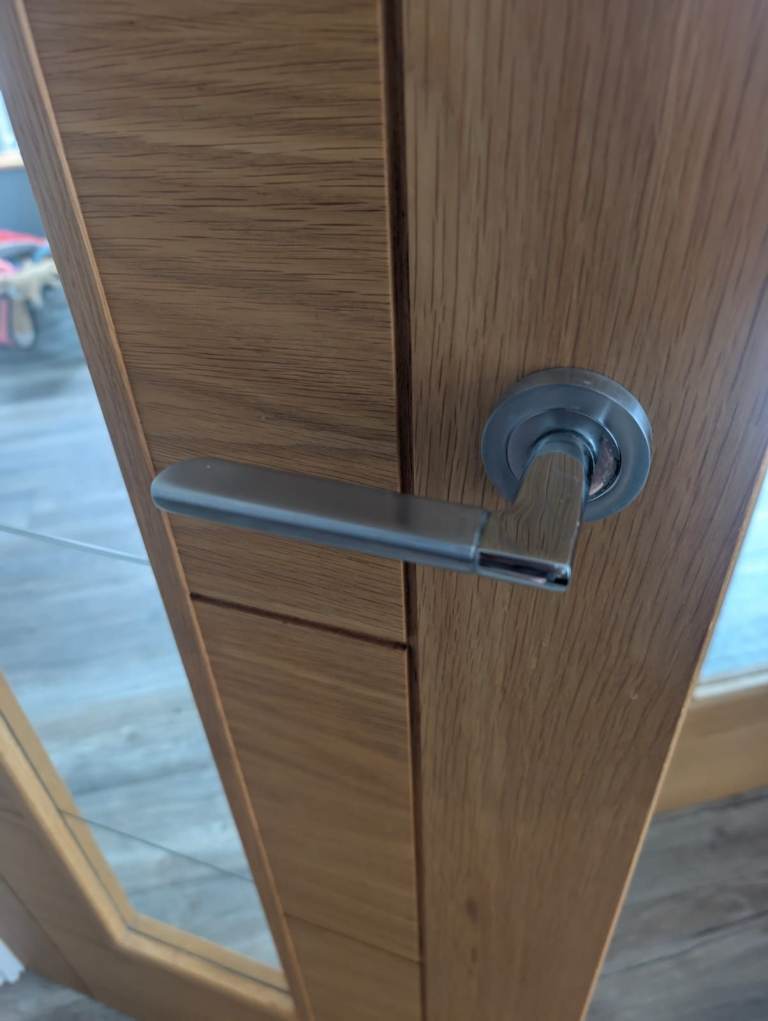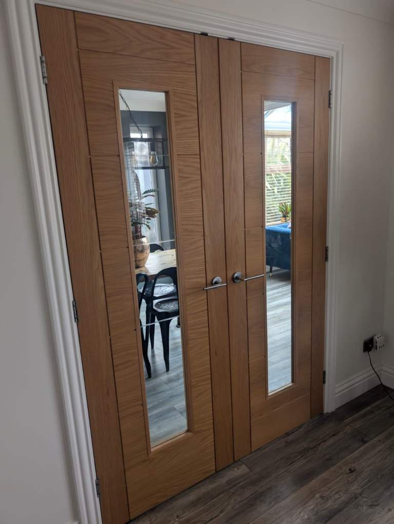 Excellent condition, solid oak glazed internal doors, each single door 686mm 1975mm high and 35mm thick. Collection only