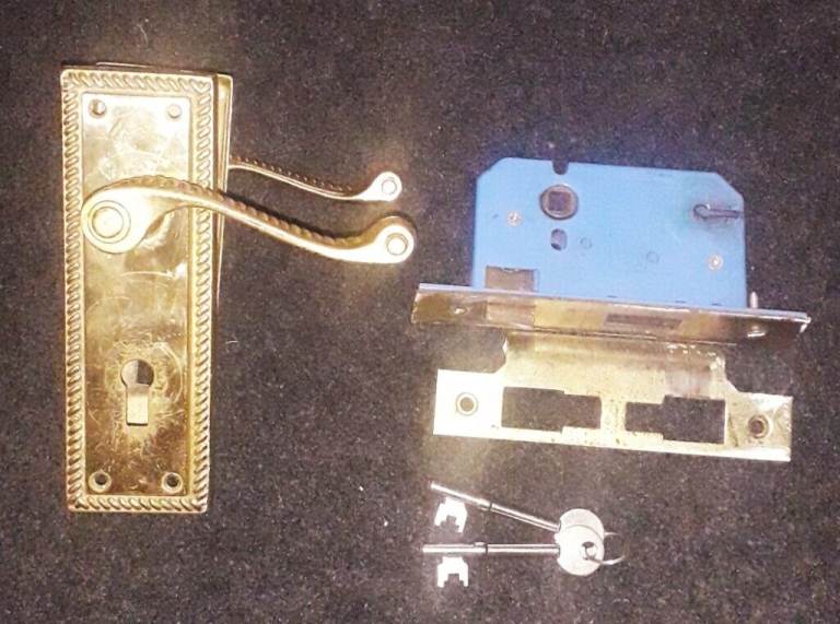 1 X Curved Lock door Handle with Spindle and 3 lever Shash Lock & 2 keys