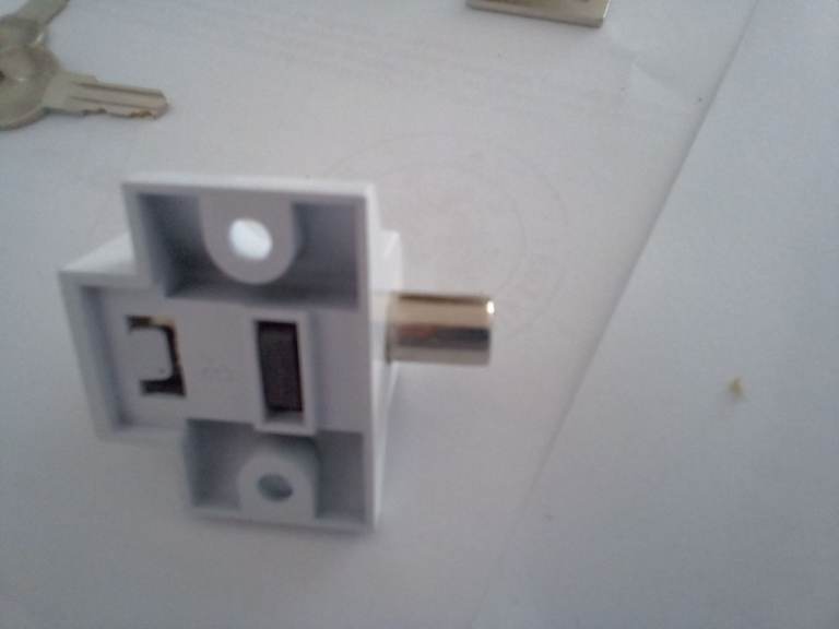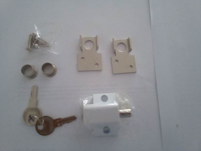 Comes with the main sliding lock which is lockable as it has two keys. Also there are plales and hole collars to tidy-up the drilled hole in the door frame.