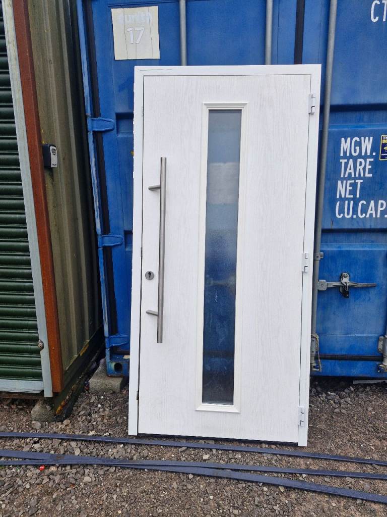 Used pvc door and frame in good working order comes with key 1000mm x 2060mm or 2090mm on cill ideal for shed garage man cave ect can deliver locally for small fee