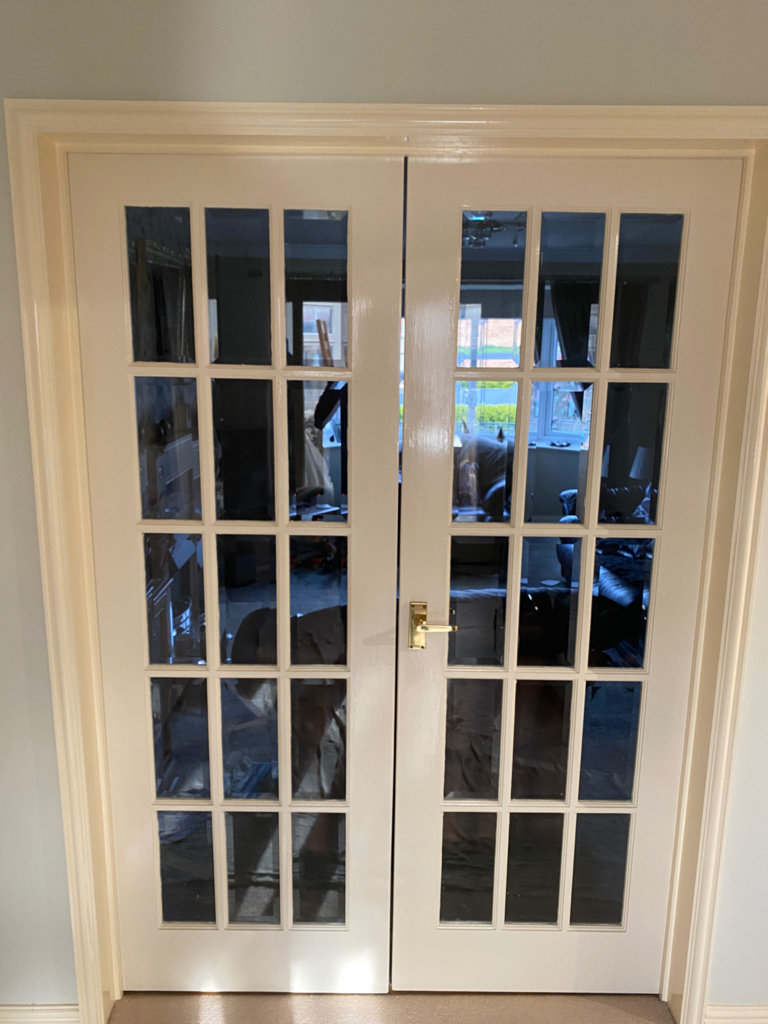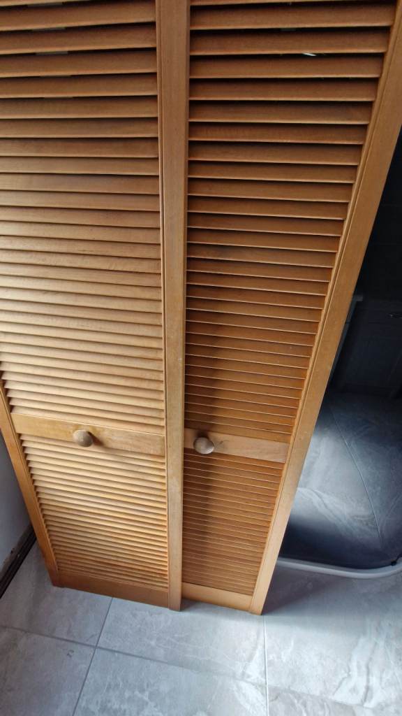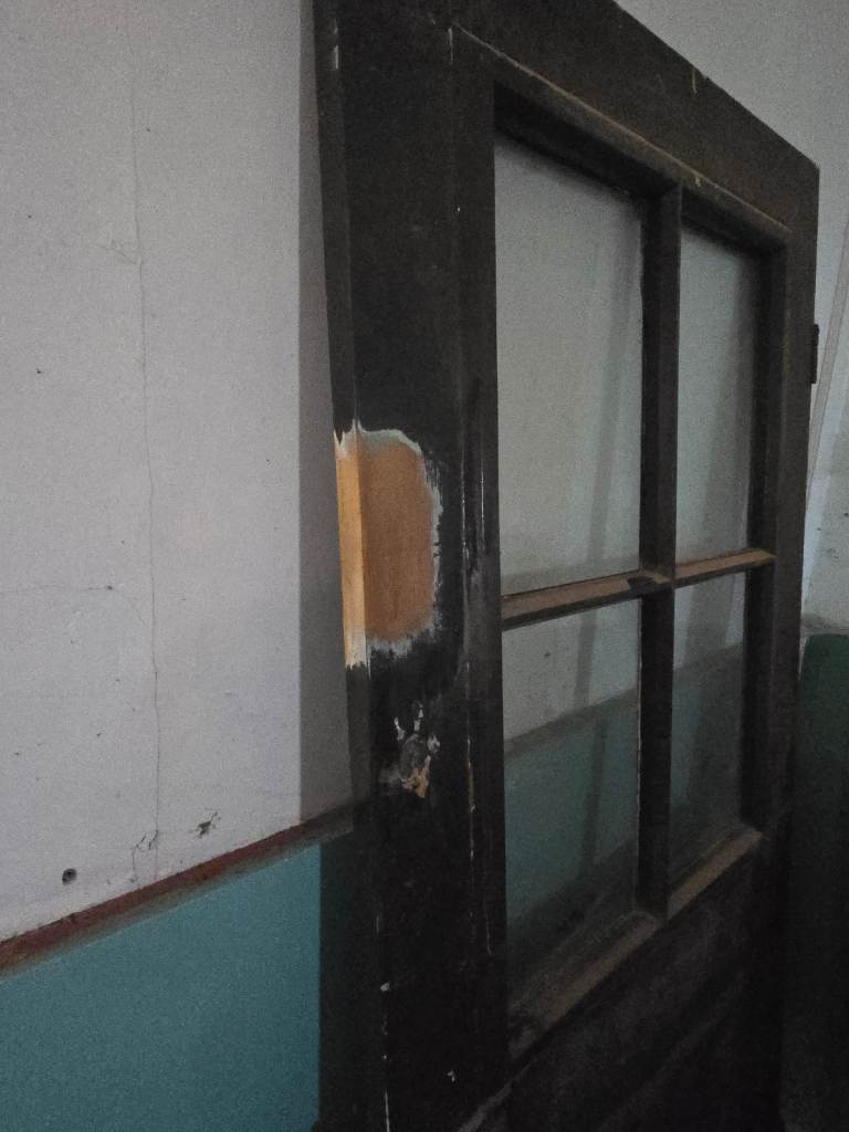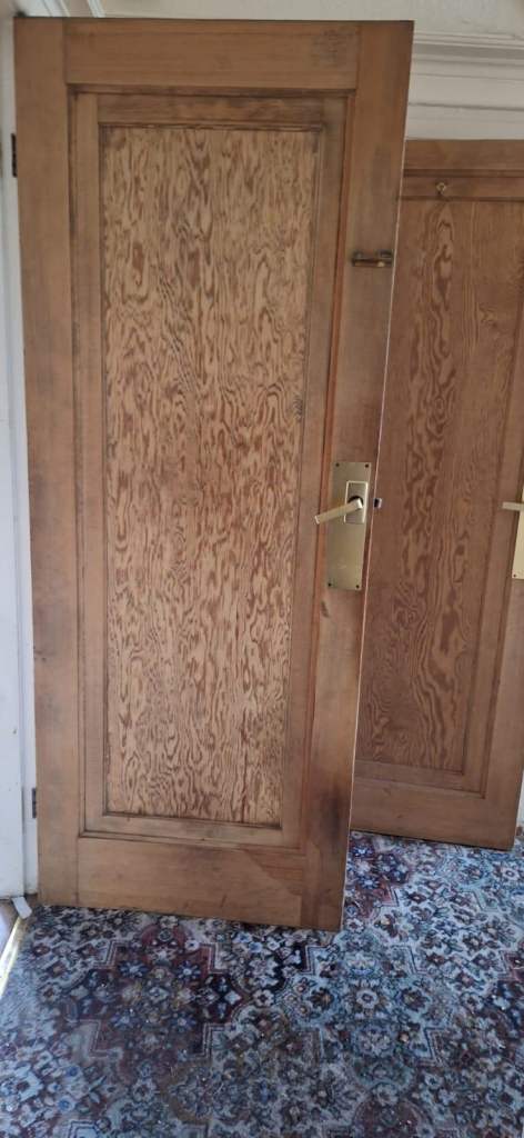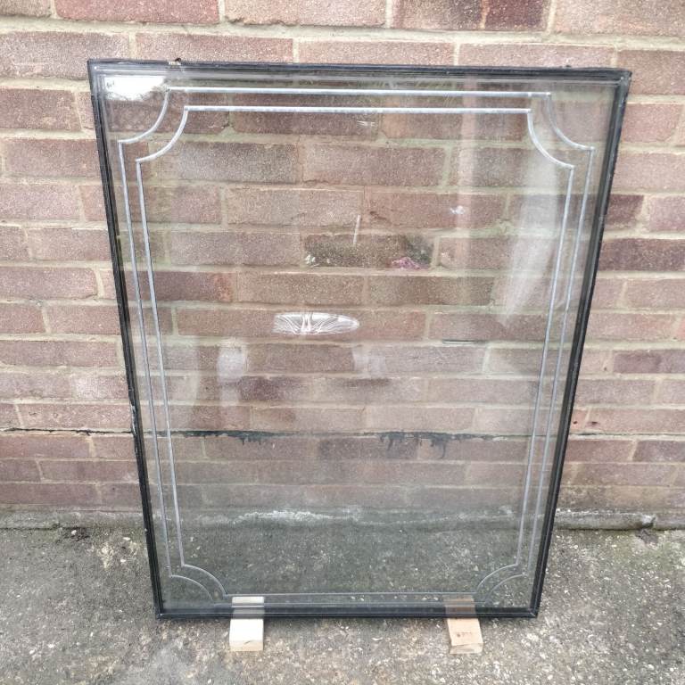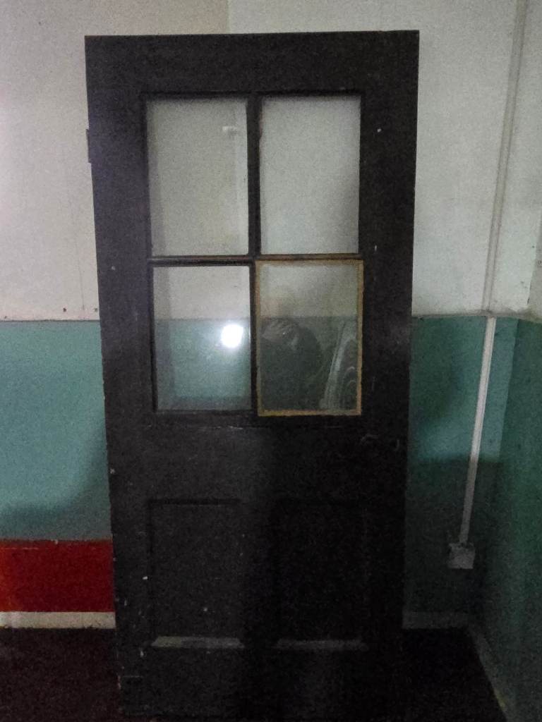 Reclaimed large internal part glazed door. Solid pine or pitch pine with latch and bakelite handles. Measurements are: 2050mm high x 905 wide x 35 thick. I've sanded some paint off so the pine can be seen, see pics 3 and 4. Collection only.