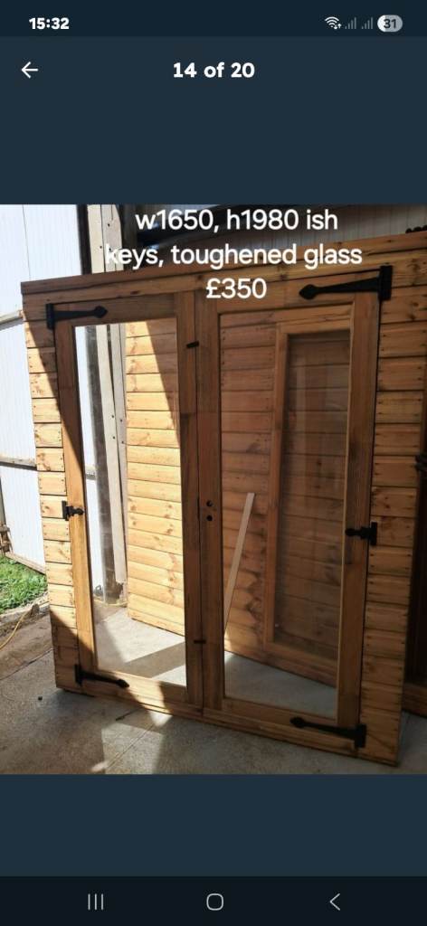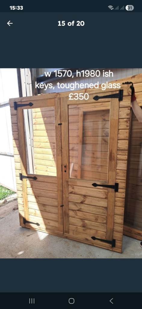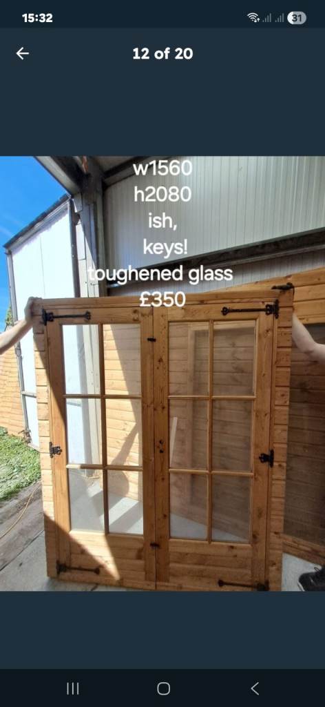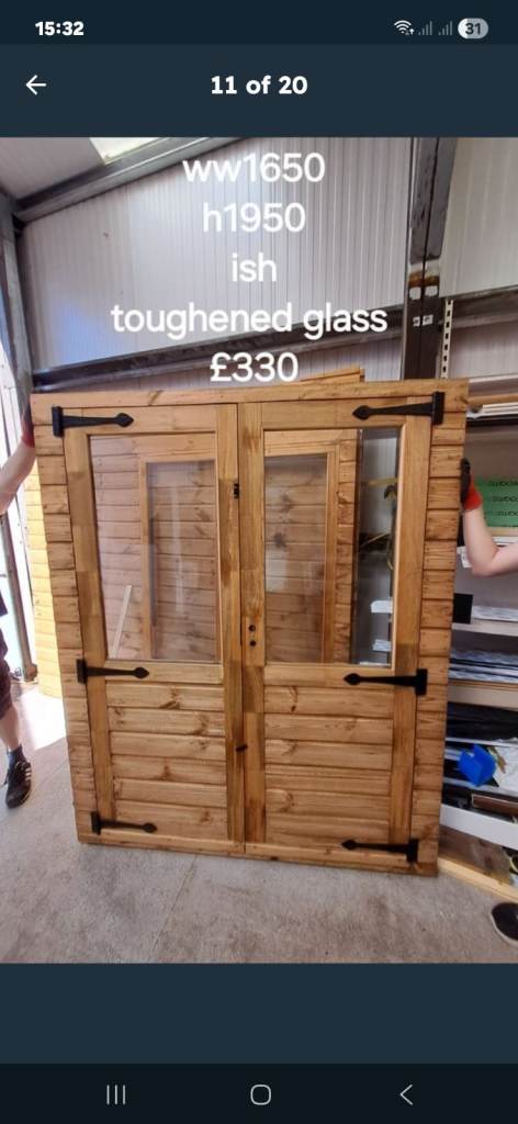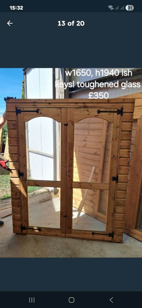 Garden/summer house french door. Toughened glass, single glazed. New! £350.00 a set.