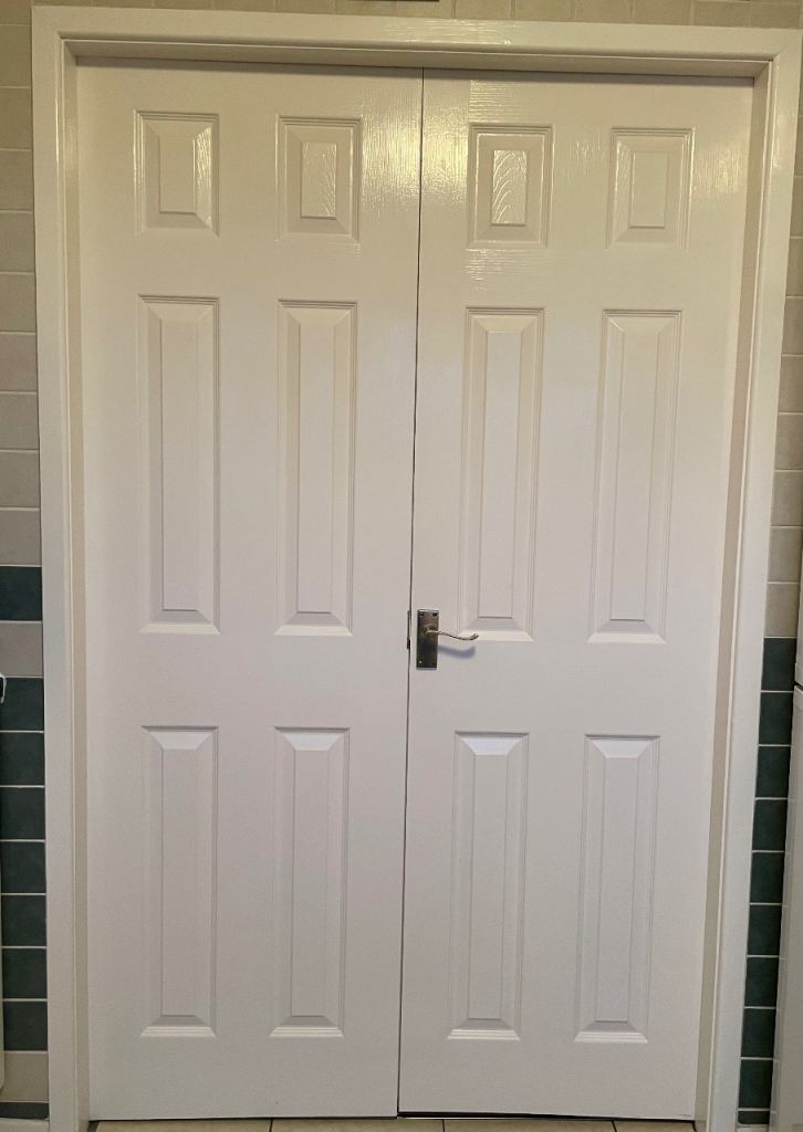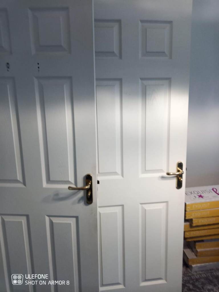 Used good condition six panel internal doors complete with handles and hinges.