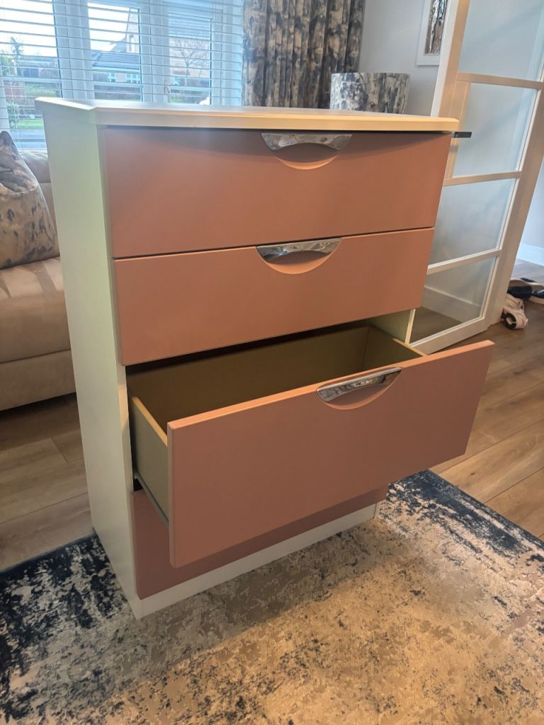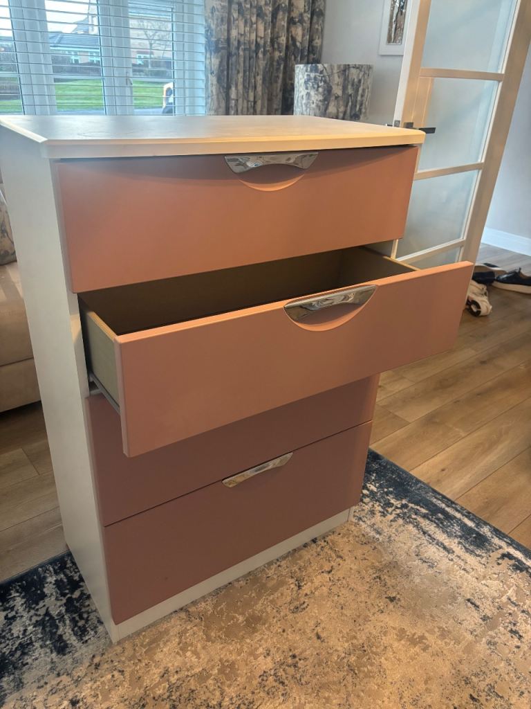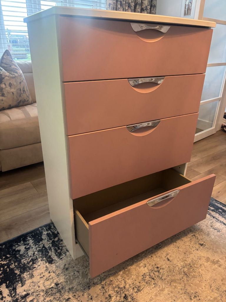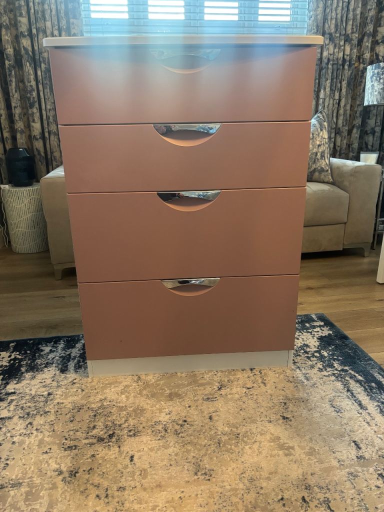 A 4 drawer chest of drawers measuring 47cm wide x 41cm deep and 106cm high.