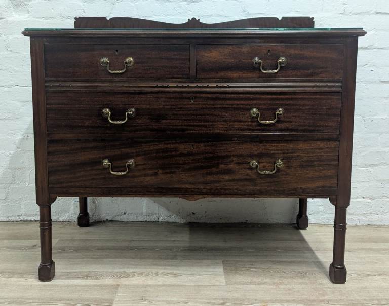 Early 20th century mahogany 2 over 2 chest of drawers. Complete with a glass top.
