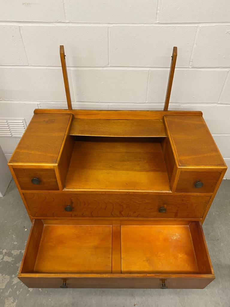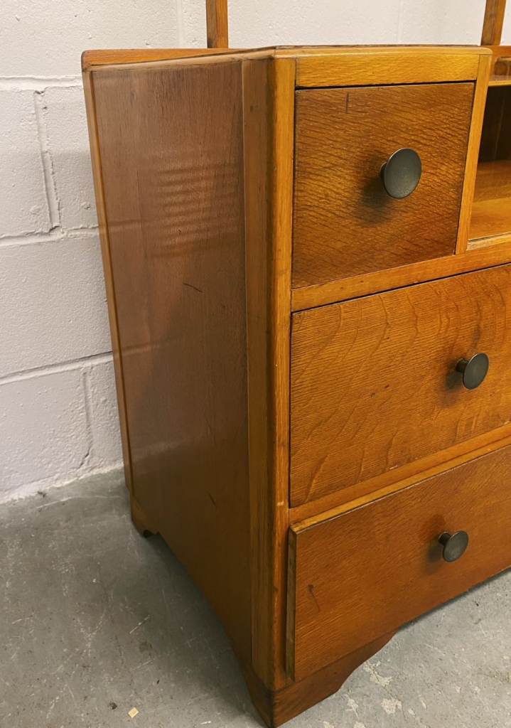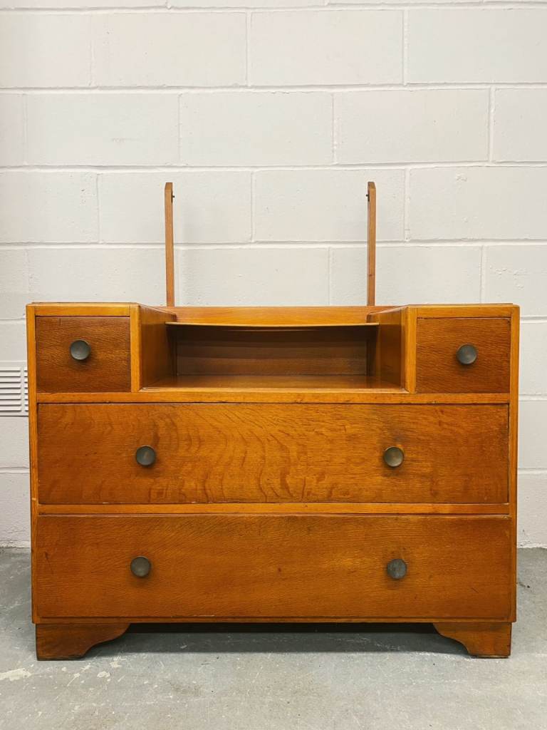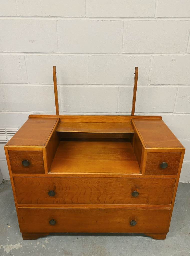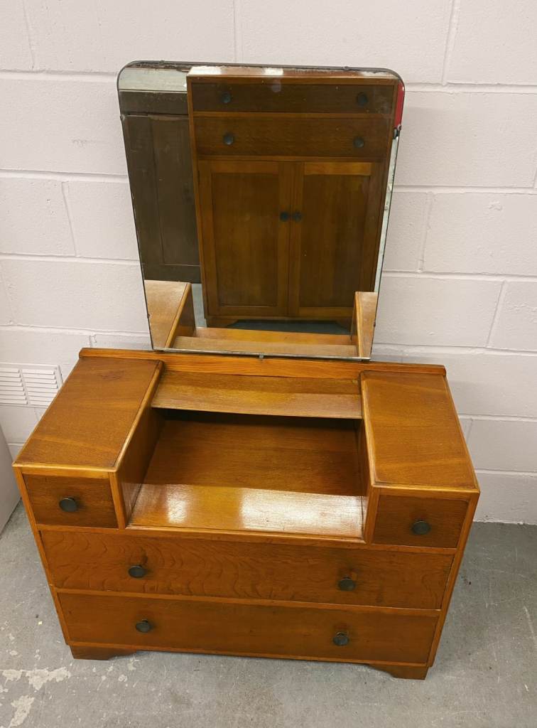 The piece we believe to be a 1941/42 Dressing table by Brand Utility in an oak. This was a government scheme in the 40's to produce affordable clothes and furniture in the UK.