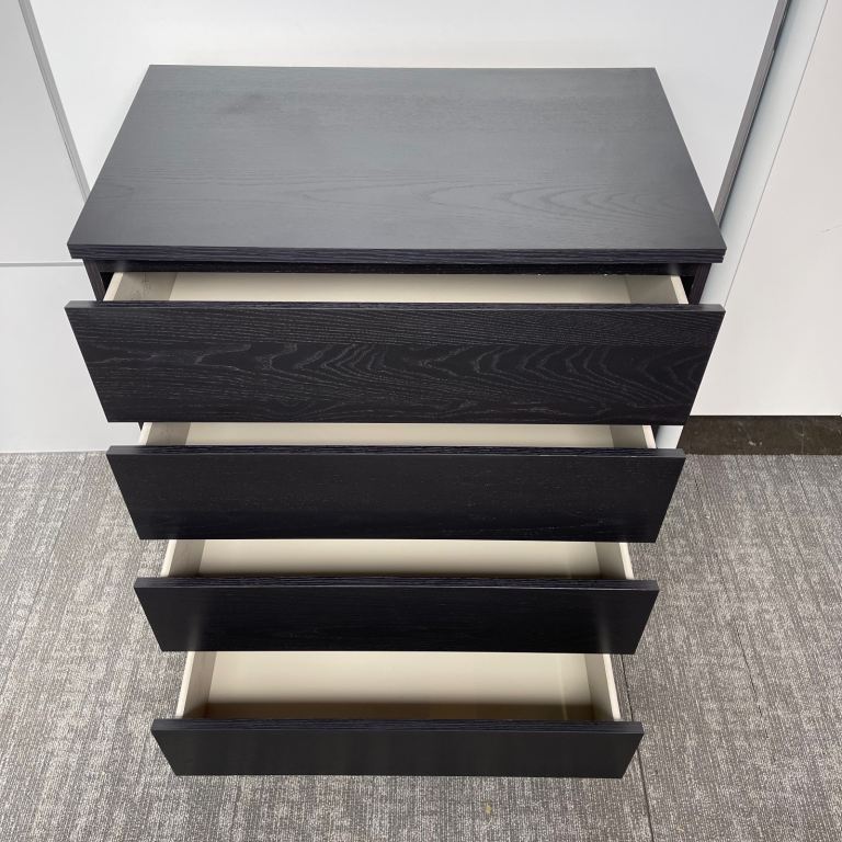 FREE DELIVERY IKEA MALM black/brown chest of 4 drawers, in good condition.