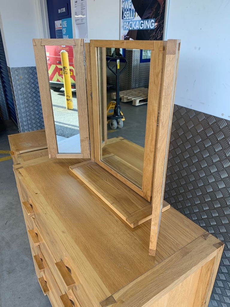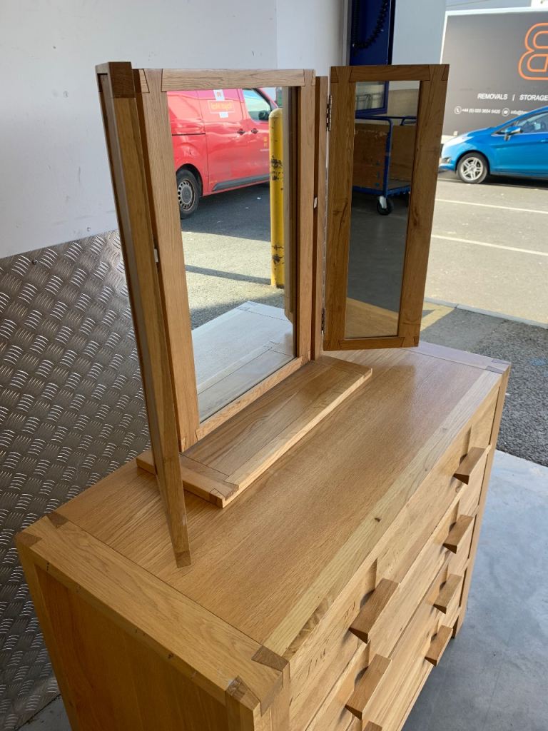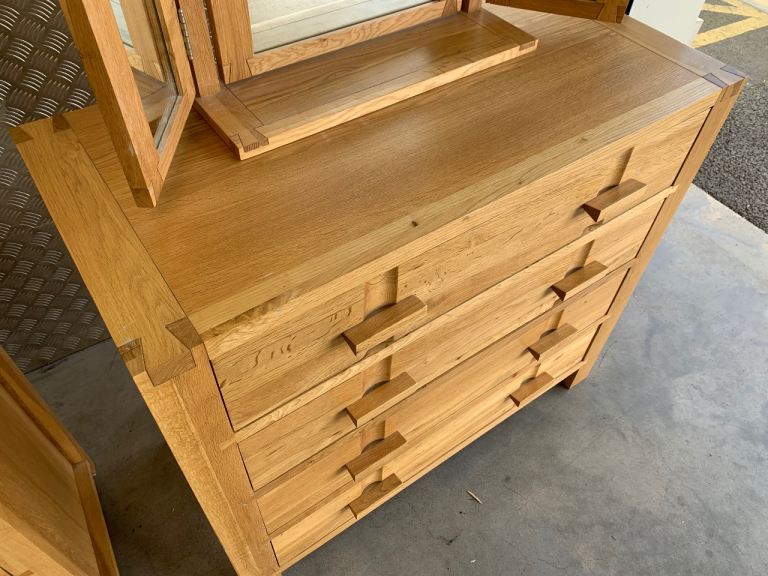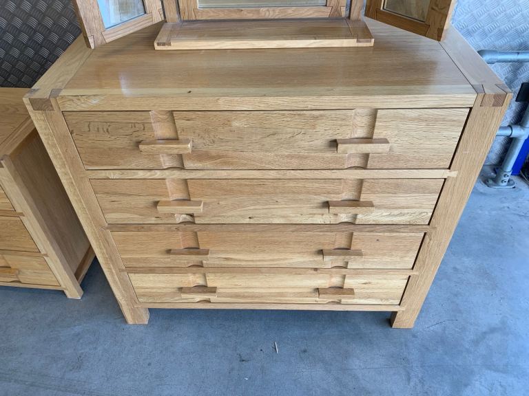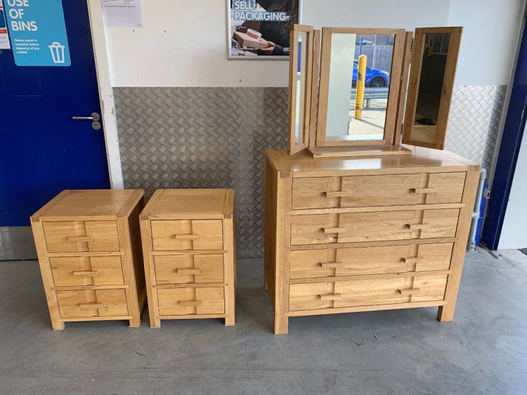 John Lewis oak chest of drawers + mirror & matching bedside cabinets in good condition.