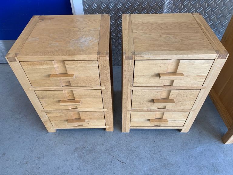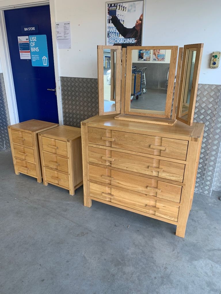 John Lewis oak chest of drawers + mirror & bedside cabinets