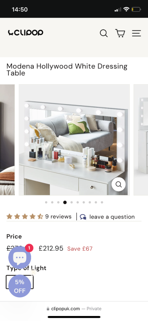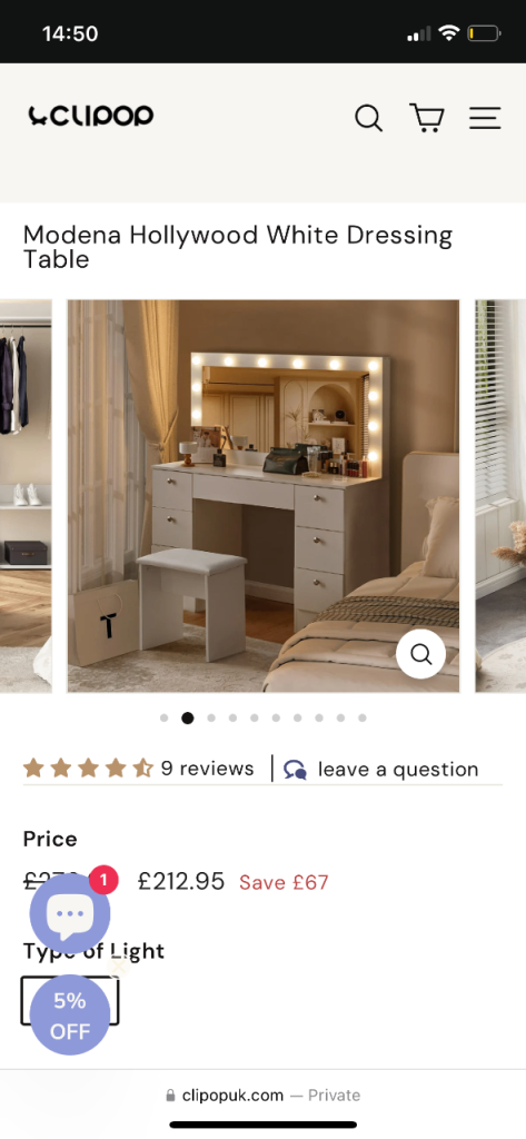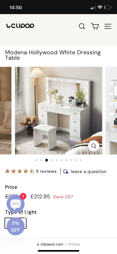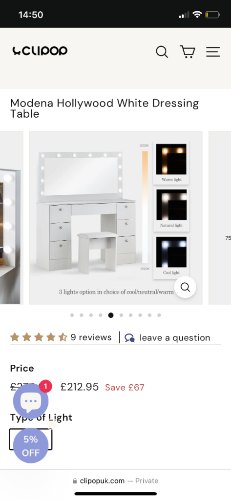 Posting for 1+ yearsModena Hollywood White Dressing Table