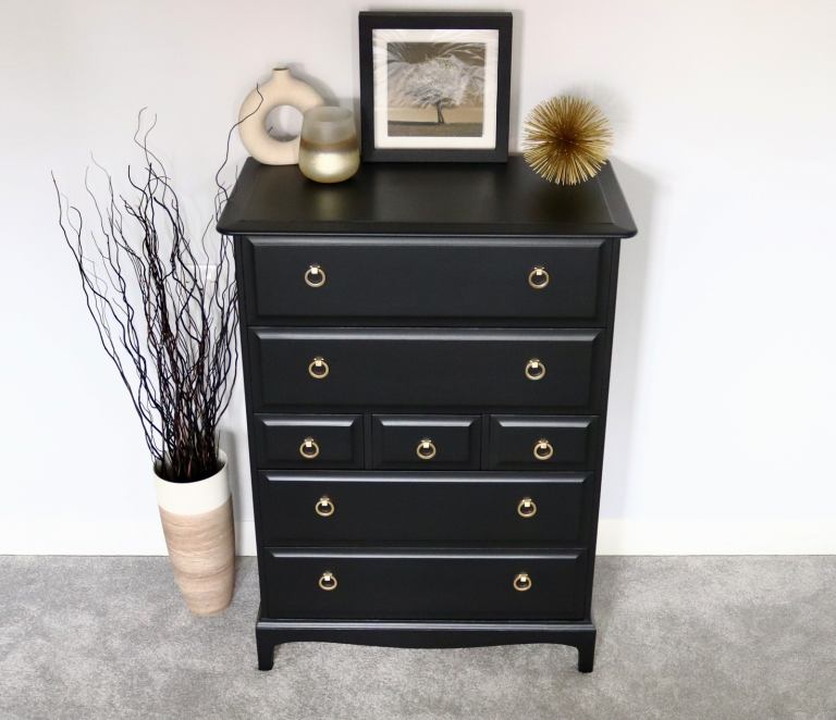 Stag Minstrel Tallboy Chest Of 7 Drawers In Black. FREE Local Delivery Available 7D