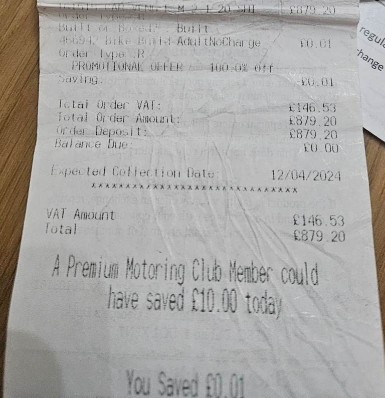 Bought with 3 yr cycle care plan