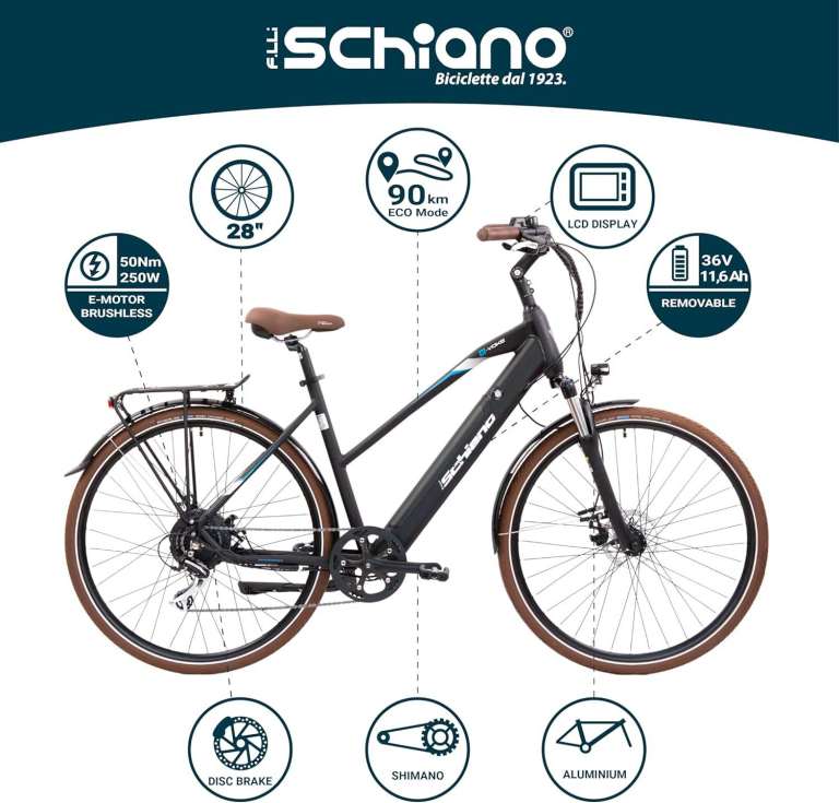F.lli Schiano E-Voke 28 inch Electric Trekking Bike 250W Motor 36V 11.6Ah Battery Shimano NEW SEALED