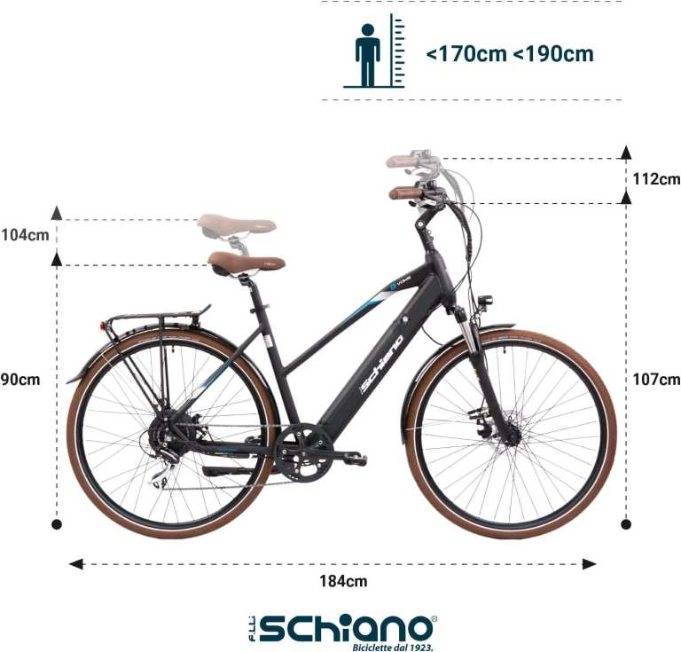 F.lli Schiano E-Voke 28inch E-Bike, Electric Trekking Bike with 250W Motor and removable 36V 11.6Ah Lithium Battery, Shimano 8 Speeds, in Black