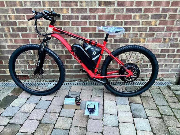 The bike it's a bit old but it works fairly well. Unfortunately has no battery or charger. I did use it with a spare battery borrowed from a scooter and the electric motor works very well. It has 26'' inches wheels and 7 gears. I don't know the frame size but it's quite large.
