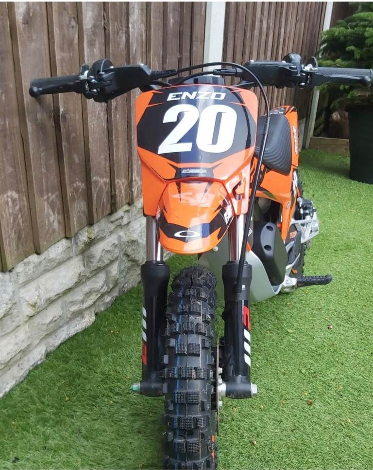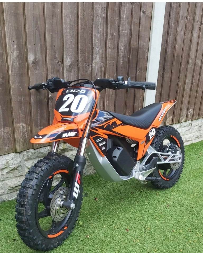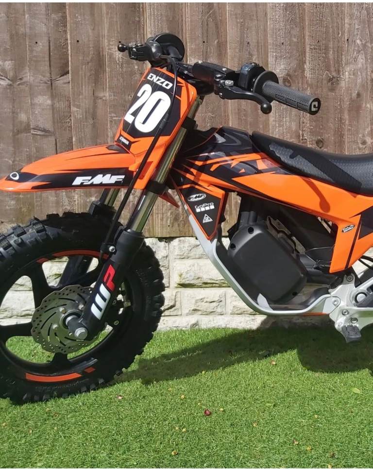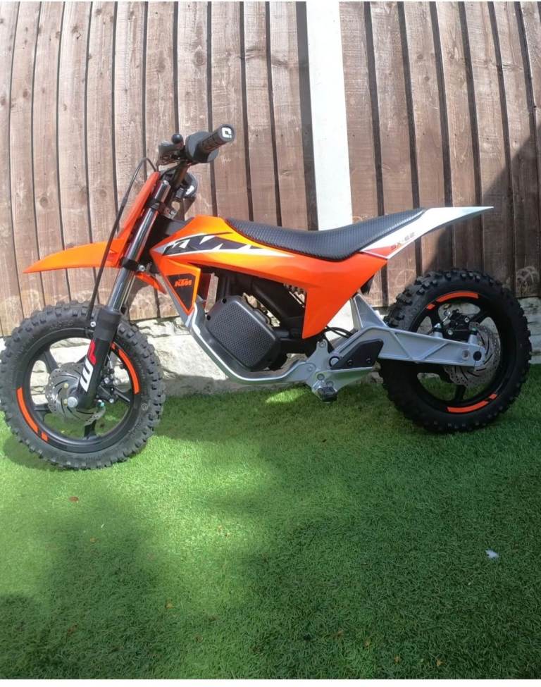 KTM E2 Electric Motocross bike. Purchased brand new last year from Judd Racing in Nottingham. Very little use. Only been riden on our flat grass feild. Like new. These are phenomenal bikes with 3 riding modes. Height adjustable for when your child grows slightly. Super silent bikes that can be riden anyway without upsetting anyone. Best MX learner bike out there. Brilliant battery life. Fast charging. Grab a lovely bike for only £2100. The bike has graphics on which you can remove and have it back to original, as in the pictures. Thanks for looking. Pick up is from Spondon Derby.