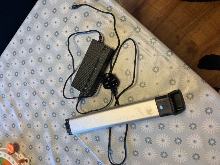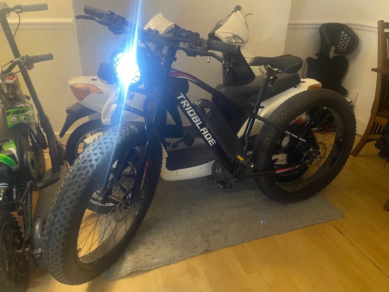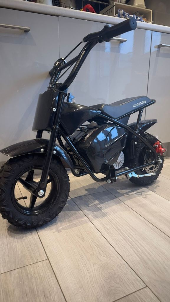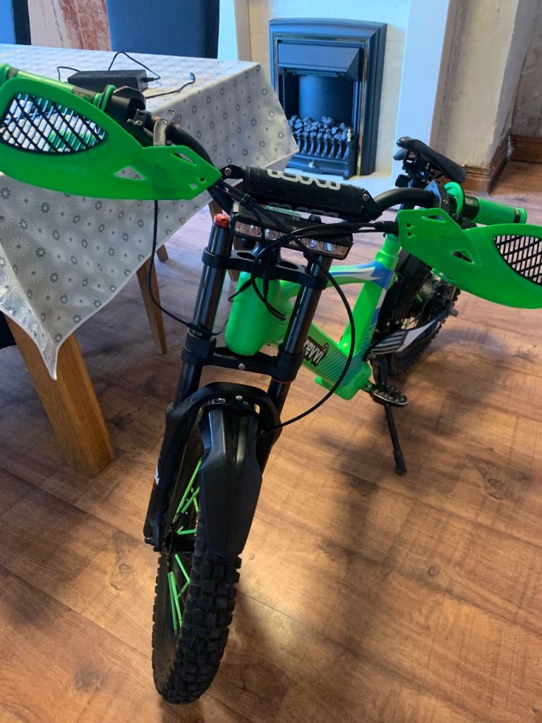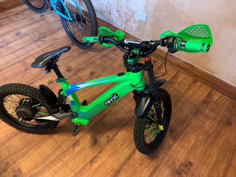 Kids revvi 18 used but great condition has added hand guards wheel spokes has spare battery.