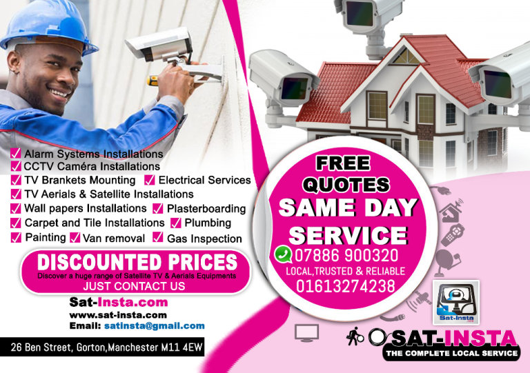 sat-insta our professionalism and our efficiency have made us one the most popularsatellite and TV aerial installation companies in Manchester all of our prices include all required equipment, VAT and our installations have 1 years warranty.