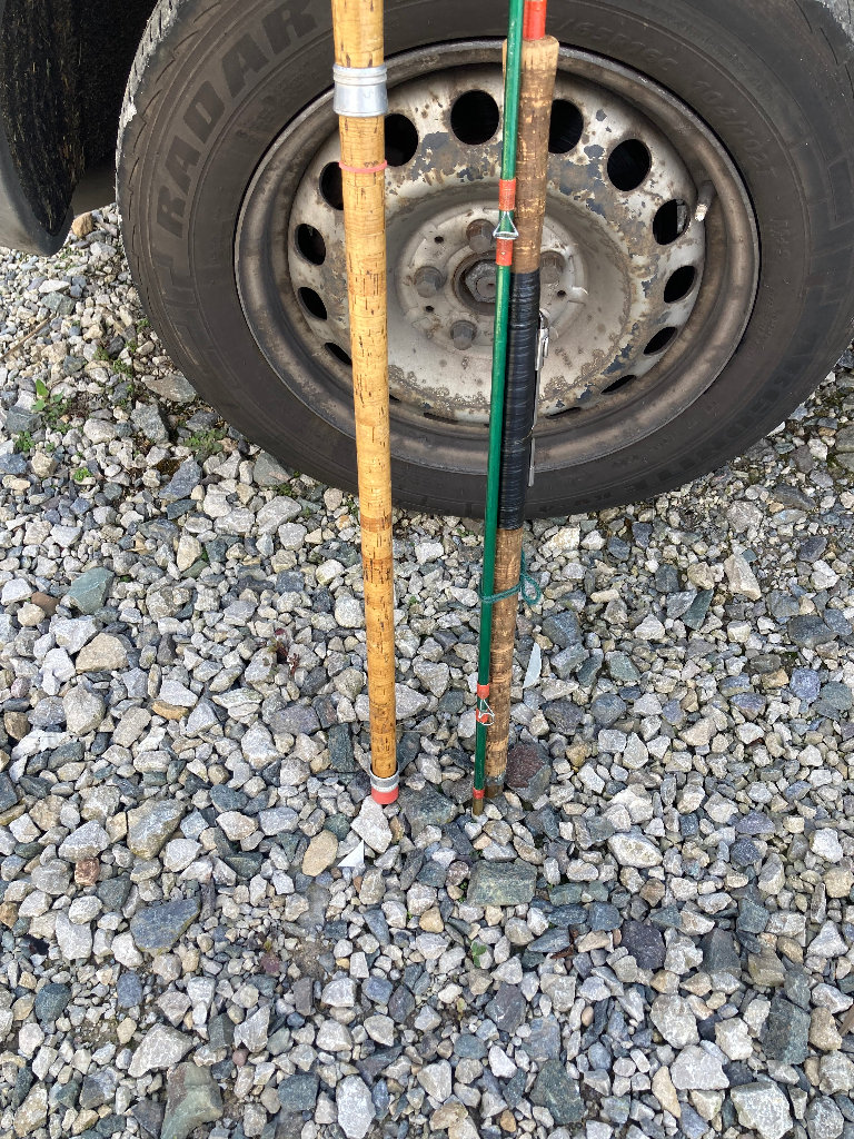 I have brass tipped rods also and a telescopic ones , flys , floats some line and some rod holders .